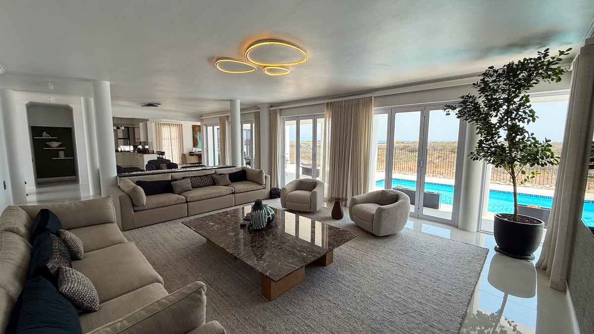Una casa costera contemporánea en el corazón de Camps Bay, a pocos pasos de la playa y su colección de cafés y restaurantes. Esta residencia de cinco dormitorios está diseñada para mostrar lo mejor de la vida en Ciudad del Cabo, con vistas panorámicas del Océano Atlántico y los Doce Apóstoles. Los amplios salones fluyen hacia terrazas bañadas por el sol, mientras que una piscina privada, una bodega y generosas áreas al aire libre crean el entorno perfecto para compartir comidas, ver las puestas de sol o simplemente relajarse con estilo.