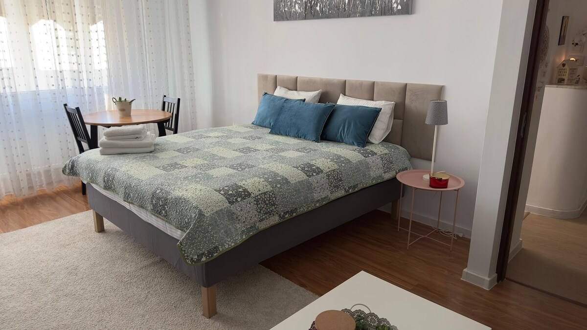 Situado en las inmediaciones de Piata Muncii (a 10 minutos a pie), a pocas manzanas de Decebal Bdv y cerca de la plaza Unirii, nuestro apartamento de dos habitaciones puede ser la opción correcta para tu estancia en nuestra encantadora ciudad. Nuestro apartamento puede proporcionarte: - 1 dormitorio con 1 cama de matrimonio; - 1 sala de estar con 1 sofá cama; - TV por cable (Netflix disponible en smartTV), Internet wifi gratuito, aire acondicionado; - una cocina totalmente equipada, lavadora, plancha, tabla de planchar, secador de pelo. Estamos más que encantados de ser parte de tu viaje.
