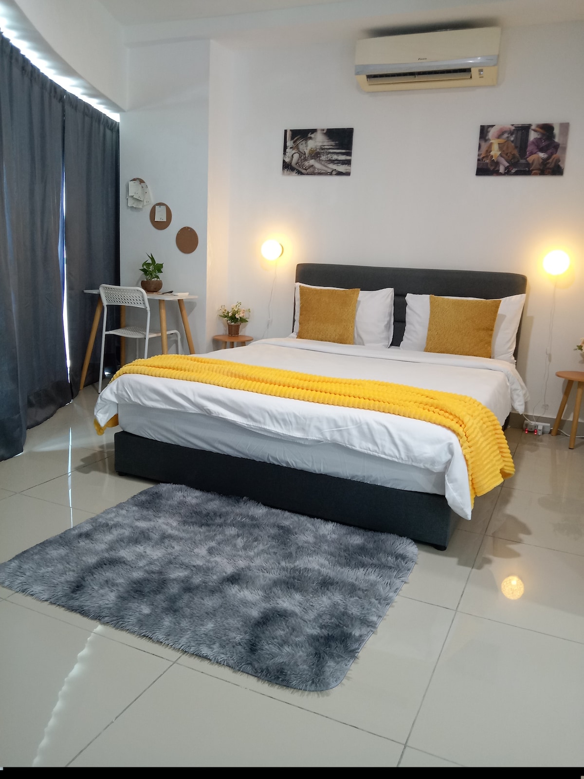 Estancia moderna y acogedora en Atria Sofo Suites, justo encima de Atria Shopping Gallery en Petaling Jaya. Perfecto para 2–3 huéspedes, el alojamiento cuenta con una cómoda cama tamaño queen, TV inteligente, wifi, espacio de trabajo, aire acondicionado y un baño limpio con ducha caliente. No se proporciona cocina ni café, pero un sinfín de cafés y opciones gastronómicas te esperan justo abajo. Seguridad 24/7, llegada autónoma y fácil acceso a TTDI, SS2, Uptown y KL City lo convierten en una base ideal.