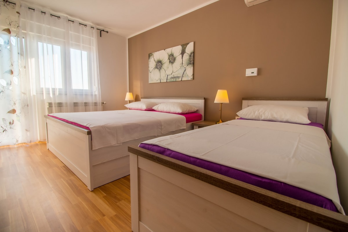 House Lisinski Nr. I located on 700m2, close to the beach (3 min walking distance), sidewalks near the sea (jogging) . You’ll love our place because of the quiet neighborhood,the seaview,spaciousness, mediterranean vegetables, terraces. Our place offers pleasant vacation to couples and families. We offer: - separate entrance to the house - free WiFi + aircondition - free parking (up to 3 cars) - kitchens, bathroom fully equiped - playground We allow one smaller dog, which is charged 10€/night