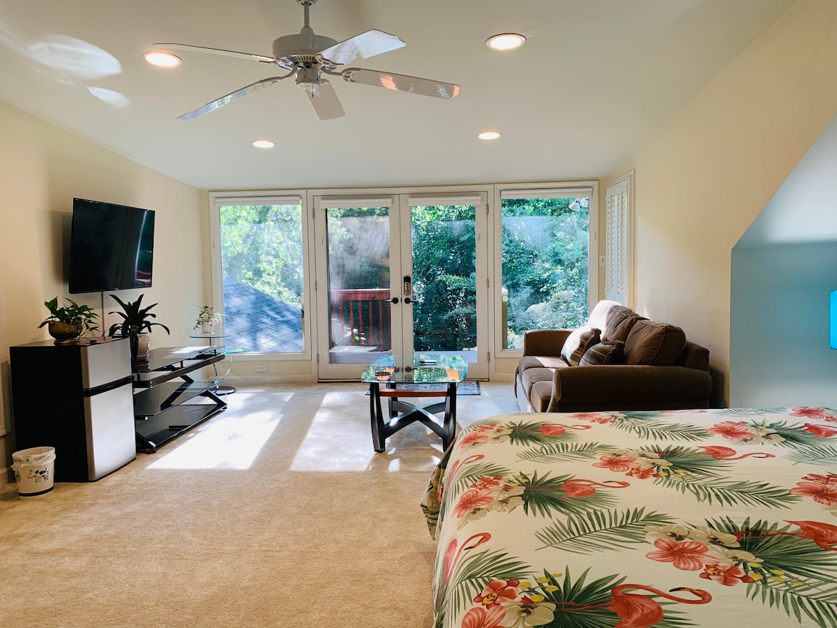 Esta es una suite de invitados adjunta a nuestra casa. Se encuentra en un barrio tranquilo. Está a solo 10 minutos a pie de la biblioteca pública principal de Baton Rouge y del jardín botánico. Este espacio es perfecto para un máximo de 4 personas, ya que está amueblado con una cama tamaño queen y un sofá cama. Este Airbnb tiene una nevera de tamaño completo, una pequeña cocina que tiene microondas, freidora de aire, olla de cocción lenta, cafetera (NO keurig), tostadora y gofrera, licuadora y arrocera. Hay aparcamiento disponible en la entrada.