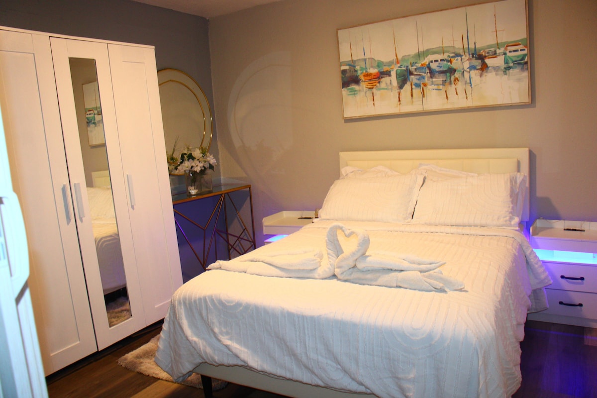 Este impresionante dúplex está perfectamente situado en el Houston Medical Center, a pocos minutos del estadio NRG, el Parque Memorial Hermann, el Distrito de los Museos y el centro de Houston. También está a solo 13 minutos del aeropuerto Hobby. Disfrutarás de la tranquilidad con nuestras características de seguridad de última generación. Puedes relajarte y desconectar con estilo con nuestras comodidades adicionales, que incluyen una cabaña solar con una acogedora mesa central de vidrio, una zona de césped sintético perfecta para entrenar o jugar con mascotas, y tecnología inteligente.