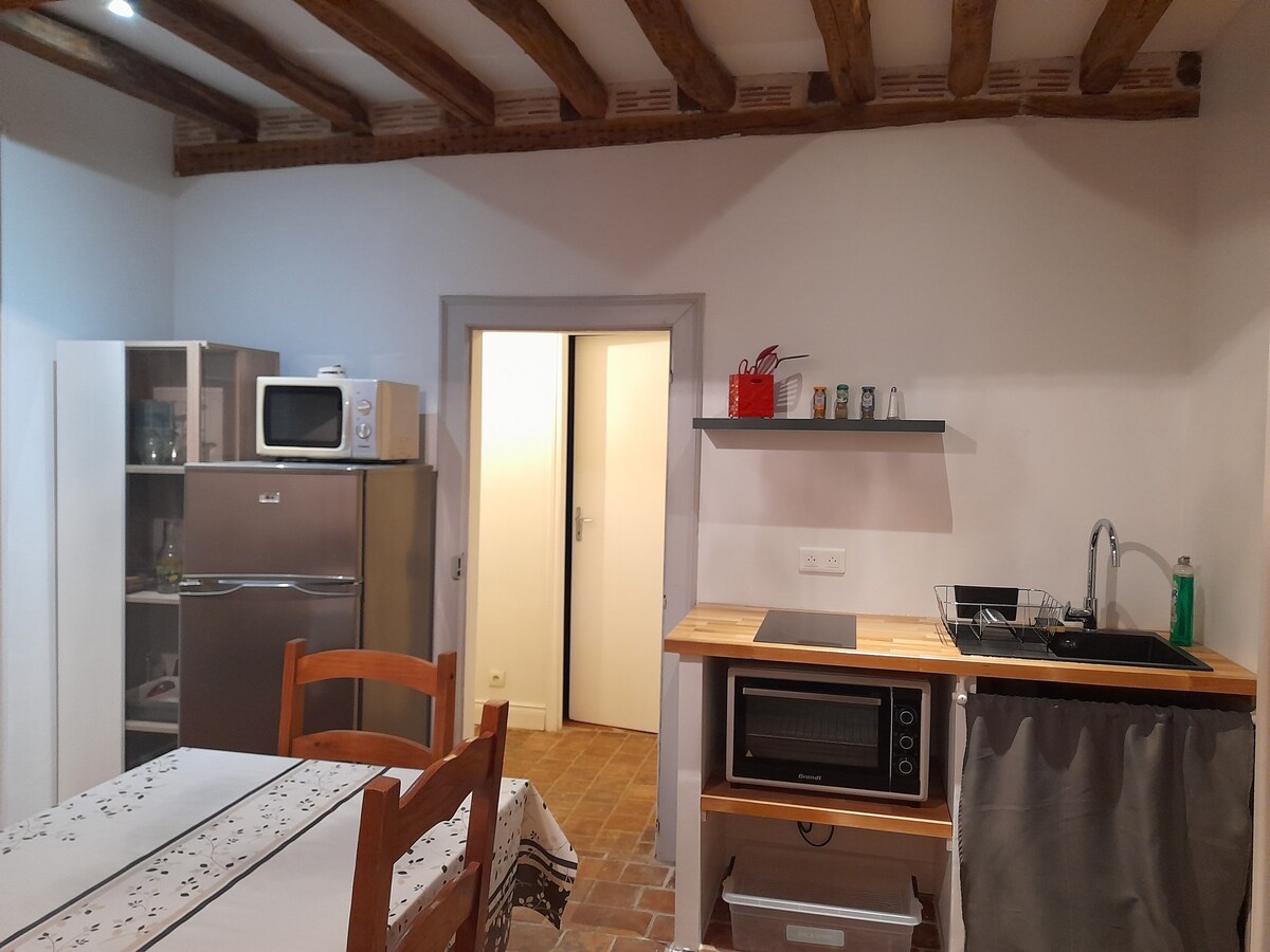 En el centro histórico del pueblo, equipado en un antiguo granero, el alojamiento de 50 m2 cuenta con una bañera de hidromasaje y un patio trasero privado y tranquilo con vistas a los árboles. A 2 minutos andando de la panadería y la tienda de comestibles. Al lado del alojamiento, la iglesia suena cada hora, incluso por la noche (para las personas sensibles al ruido, prever las bolas quies).