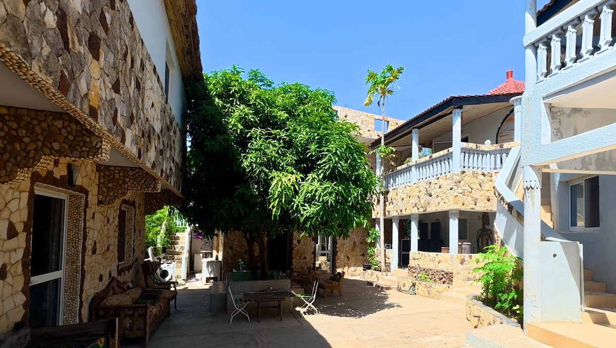 Petit ensemble de cases chambre d'hôtes avec accès direct à la plage, piscine, eau chaude, chambres climatisées, Wifi gratuit, un endroit de rêve pour passer quelques jours ou quelques semaines. Terrasse abritée entre piscine et plage pour prendre ses repas, espace lounge, tout y est pour un séjour parfait. Pour vos excursions, notre partenaire se fera le plaisir de vous faire découvrir le Sénégal. Le chauffeur pourra venir vous chercher à l'aéroport.