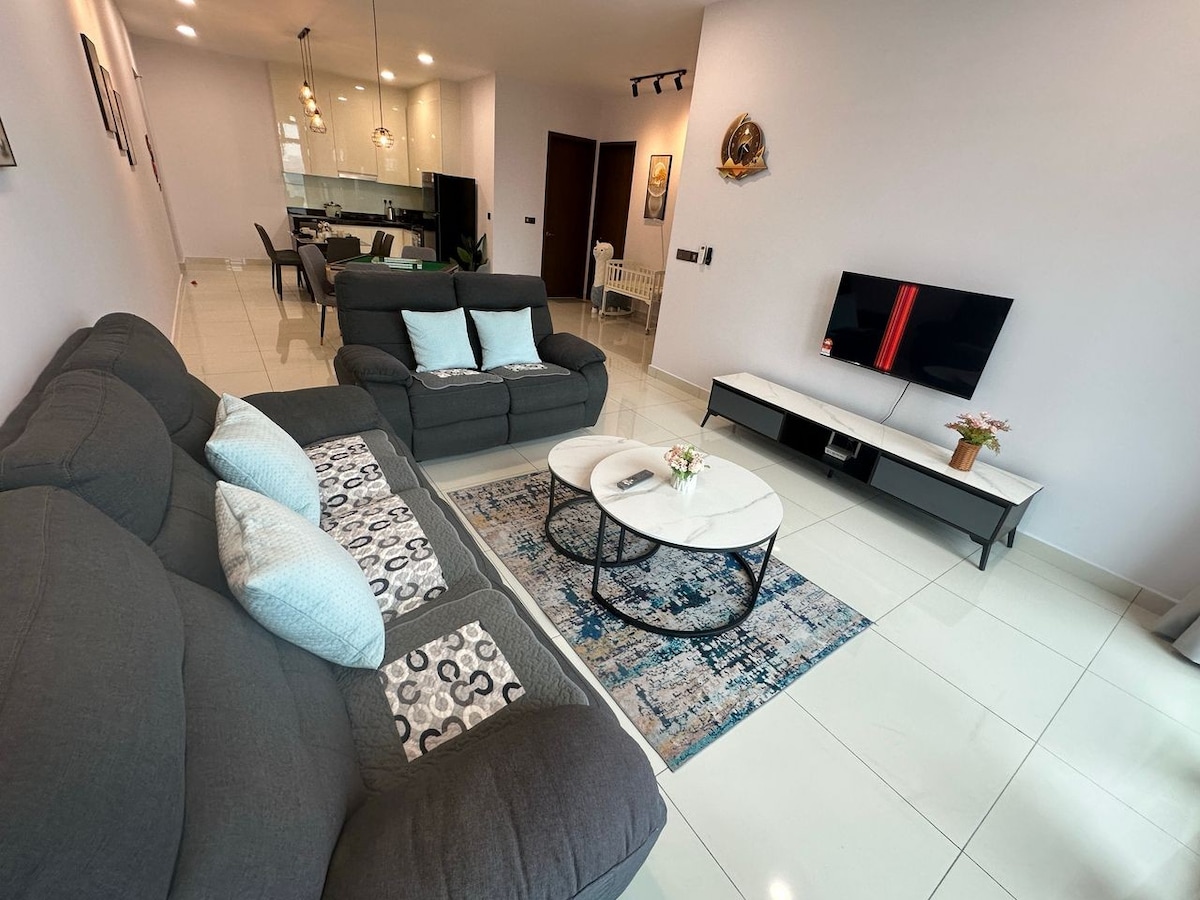 ¡Lujosa y espaciosa unidad de 3 dormitorios con bañera! ¡Camas tamaño king y queen de primera calidad que garantizan un buen sueño aquí con increíbles vistas al centro comercial Midvalley Southkey! ¡Lo más destacado! - Bañera privada - TV inteligente de 65 pulgadas con aplicaciones de YouTube y Netflix. - Mesa de piscina - Consola de juegos de retro - Dispensador de agua potable Rodeado de centro comercial y gran variedad de sabrosas comidas locales - A 2 minutos en coche de Midvalley Southkey JB - A 5 minutos del centro comercial KSL City Mall. - A 8 minutos del centro comercial City Square y Custom JB.