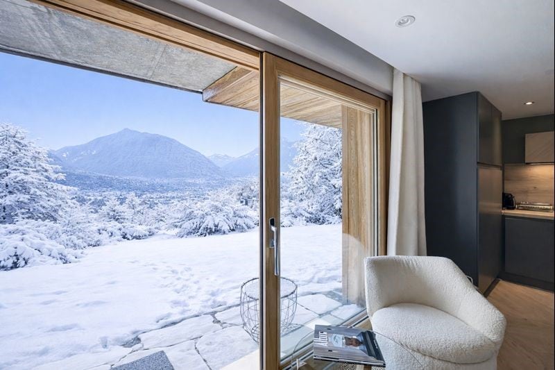 La Cabane puede alojar hasta 7 personas. La ropa de cama es un servicio opcional. El área del apartamento es de 55 m²+ 25 m² de terraza. Situado en una tumbona en la terraza orientada al sur, disfruta de la vista panorámica de las montañas nevadas de los Alpes del Sur, sin ningún tipo de vis-à-vis. Cuando hace frío afuera, caliéntate frente a la chimenea, sentado en una acogedora silla club: puedes imaginarte en un antiguo chalet de antaño... sin embargo, equipado con wifi, televisión y todo lo moderno.