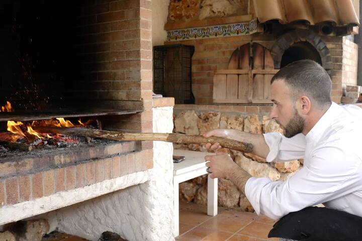 Experiencia mediterránea con un toque argentino. Comenzamos con 3 entrantes, jamón ibérico y tabla de quesos, croquetas caseras y gazpacho. Plato principal: deliciosa barbacoa argentina con carne local y ensalada. Para terminar, tiramisú casero.