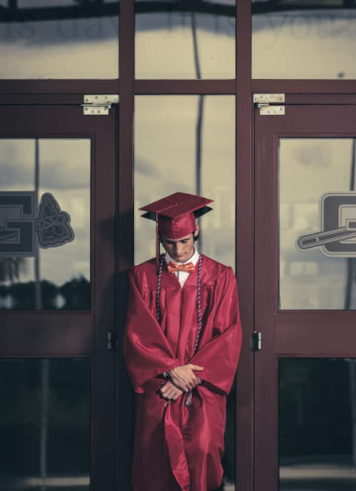 Una sesión de fotos de graduación en escuelas secundarias o universidades locales.