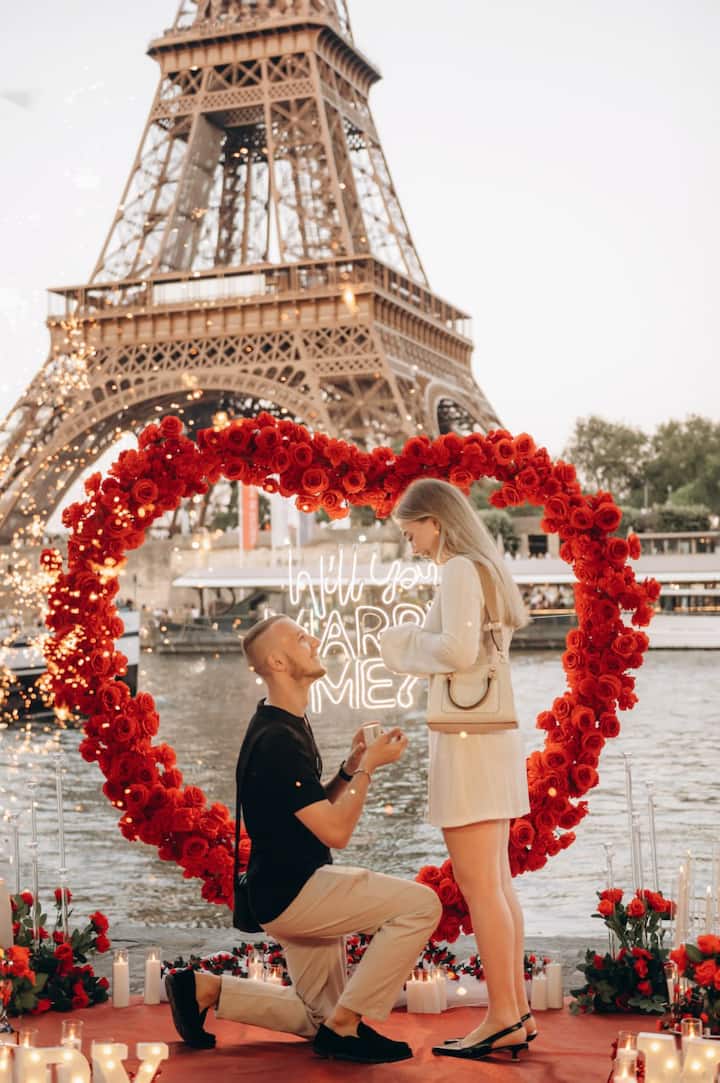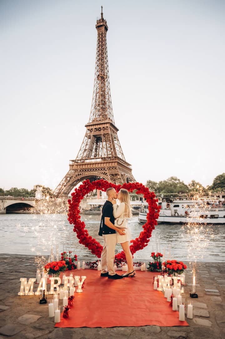 Haz la propuesta de matrimonio con la que ella soñaba, en un corazón de rosas escarlata con la brillante Torre Eiffel de fondo. Me encargaré de todo, desde la decoración hasta las fotos, para que puedas disfrutar de este momento mágico y guardarlo para siempre en tu memoria y en tus fotos.
