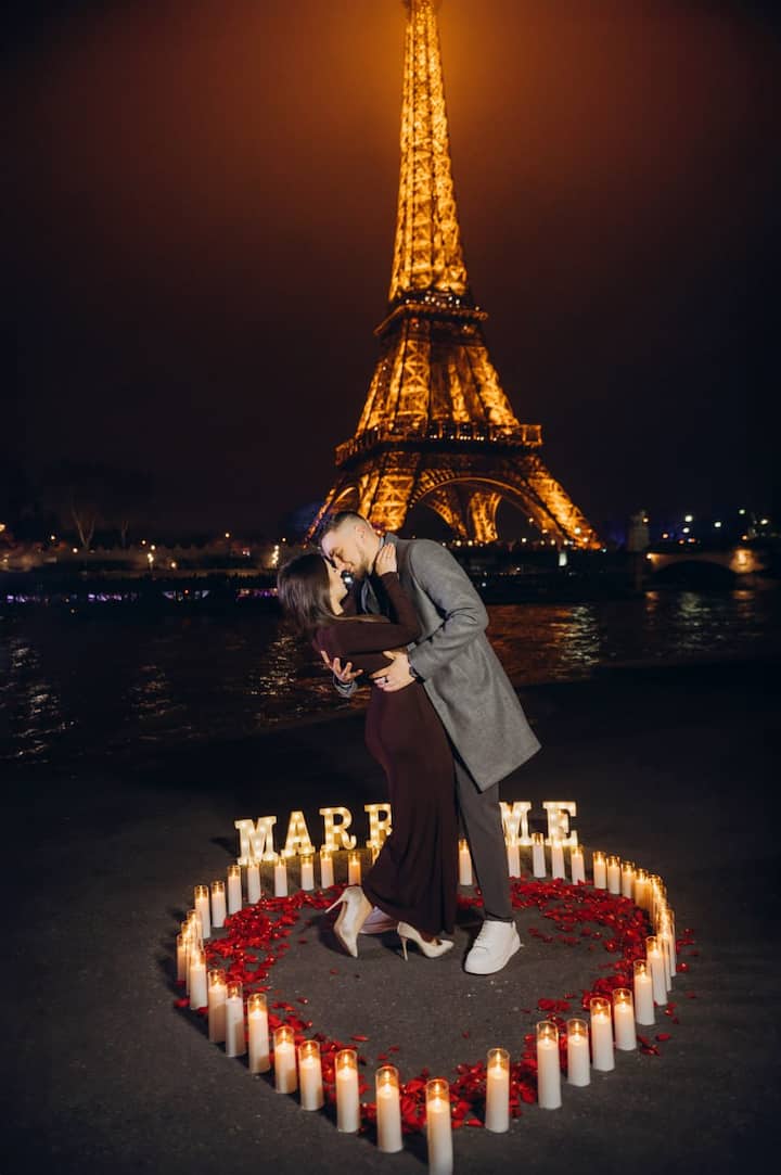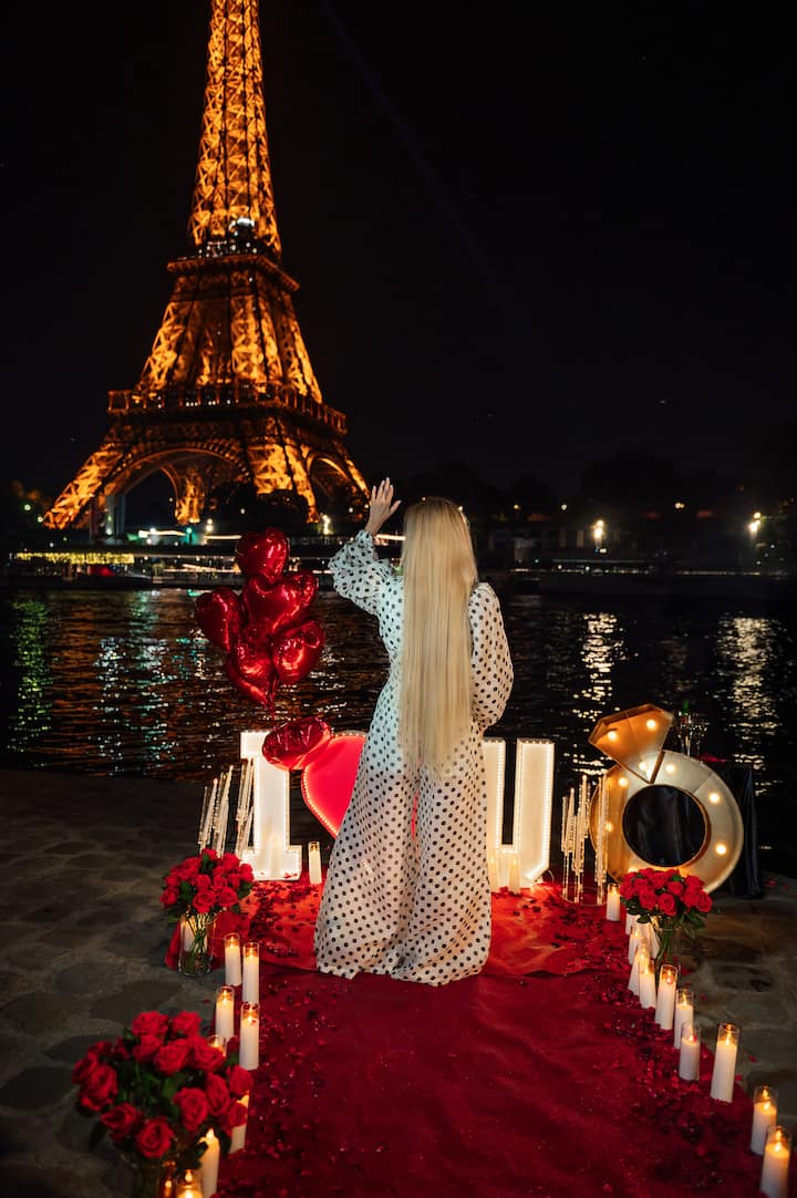 Una propuesta de matrimonio con la Torre Eiffel de fondo es un verdadero cuento de hadas. Crearé para ti un ambiente tierno con un corazón de velas en el muelle del Sena y ayudaré a que este momento sea perfecto. Una coordinación sencilla, una decoración romántica y una sesión de fotos conmovedora: todo para que tu «sí quiero» sea inolvidable.