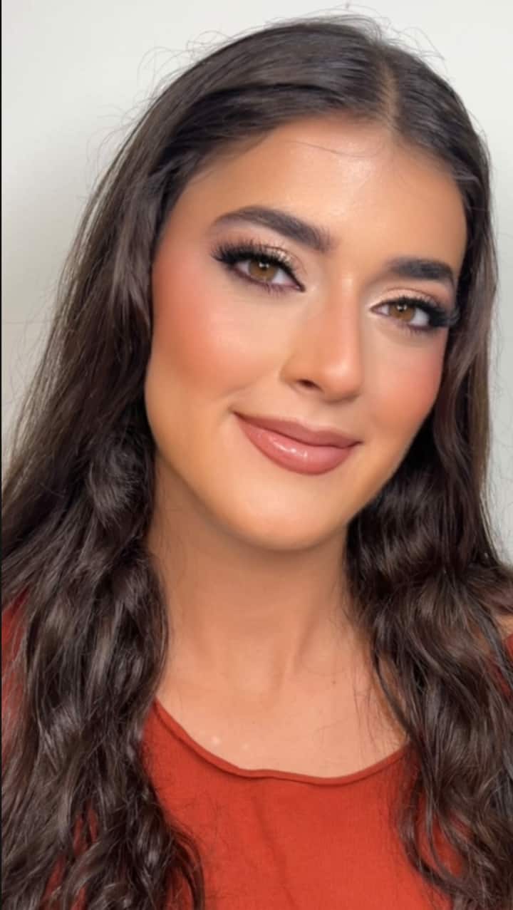 Esta aplicación incluye preparación de la piel, aplicación de pestañas postizas y maquillaje de larga duración.