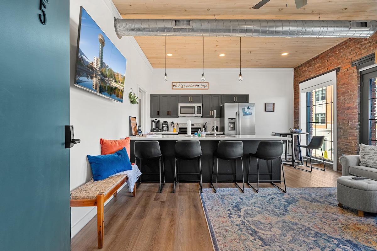 River Retreat es un hermoso apartamento en el río, cerca de la ciudad y listo para tu escapada a Smoky Mountain. Hemos incluido todo lo necesario para relajarte y renovarte. El apartamento cuenta con una cama tamaño king con balcón con vistas al río. El lugar perfecto para disfrutar del café por la mañana o de un buen libro. El baño es amplio y cuenta con lavabos dobles, ducha y bañera de hidromasaje. El estudio cuenta con techos abovedados con muchas ventanas para la luz natural. Cerca de la ciudad, pero parece un mundo aparte.