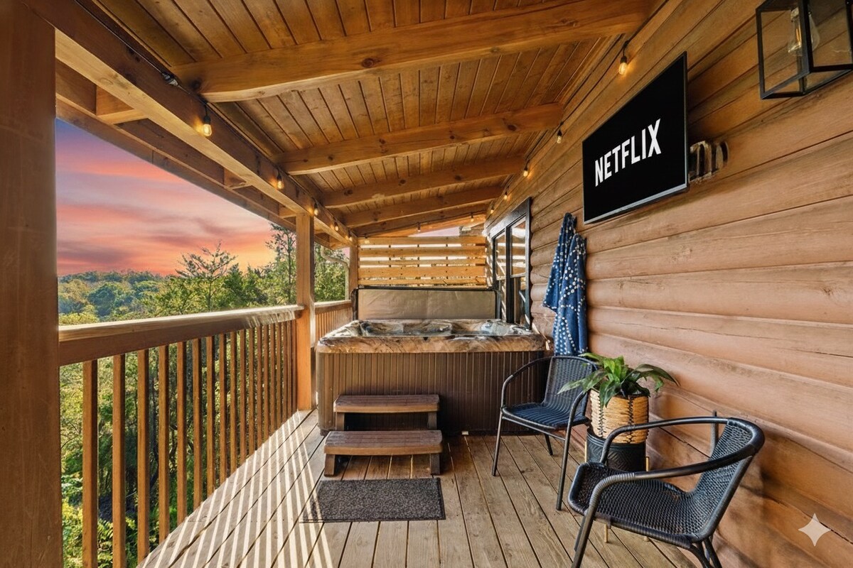 Escápate a esta acogedora y aislada cabaña de madera ubicada justo fuera de las impresionantes Montañas Humeantes. Perfecta para una escapada romántica, luna de miel o aniversario, esta cabaña ofrece todas las comodidades de casa y mucho más. En el interior encontrarás una cómoda cama king size, perfecta para acurrucarte junto a la romántica chimenea. Después de un día de senderismo o explorando el Parque Nacional de las Grandes Montañas Humeantes, relájate en el jacuzzi interior o sumérgete en el jacuzzi exterior, rodeado de naturaleza y vistas a la montaña. Esta cabaña es el refugio perfecto para parejas que buscan una escapada tranquila y romántica, lejos del bullicio de la ciudad. Muchos huéspedes lo han utilizado como un lugar de luna de miel, ¡y por una buena razón! La cabaña ofrece todo lo que necesitas para una escapada romántica y memorable, que incluye fácil acceso a actividades al aire libre como senderismo, observación de vida silvestre y más. Situada en Sevierville, Tennessee, esta cabaña está a poca distancia en coche de las encantadoras ciudades montañosas de Gatlinburg y Pigeon Forge, donde puedes disfrutar de atracciones para familias, tiendas, restaurantes y entretenimiento. Reserva ahora y experimenta la mejor escapada romántica en el corazón de las Montañas Humeantes, en una cabaña de madera rústica que combina lujo y asequibilidad.