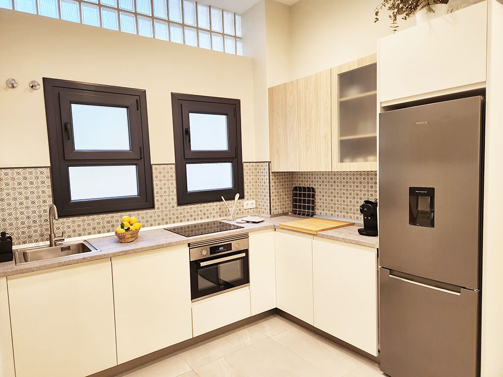 Suit- Loft con terraza privada en planta baja. Además podràs disfrutar de una terraza Chill Out en área común del edificio en tercera planta, abierta durante todo el año.. El alojamiento, dispone de Fibra óptica de 600 MB ( gratis), por lo que te permitirà teletrabajar al aire libre. Dispone de cama matrimonio y sofás cama 140x200. Ideal para parejas con o sin niños. Dispone de todas las comodidades para sentirse como en casa.
