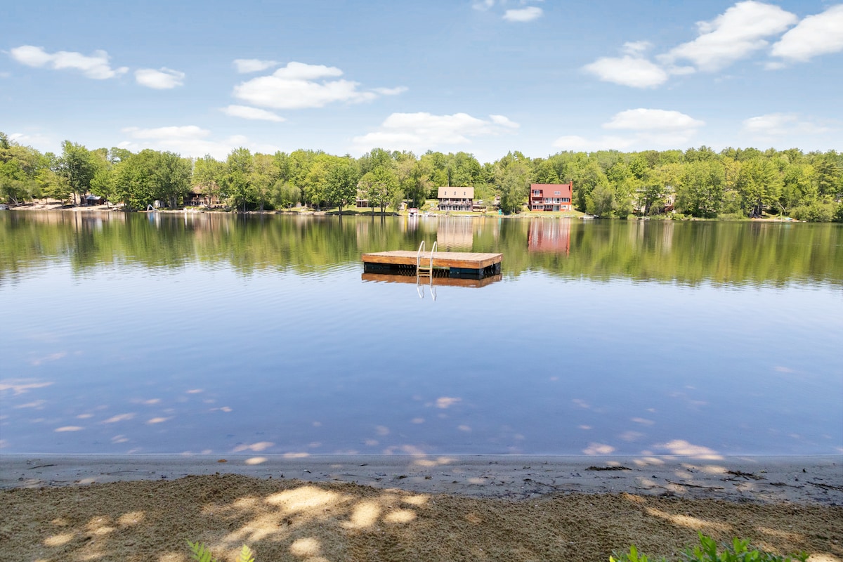 Escápate a un refugio tranquilo junto al lago con una terraza aislada iluminada por el sol y un muelle privado con increíbles vistas del lago Sunrise, además de una bañera de hidromasaje para 4 personas y servicios de temporada como un bote a pedales, dos kayaks, una tabla de surf de REMO, mesa de fuego de gas, aire acondicionado central, una estufa de pellets y raquetas de nieve. Disfruta de actividades cercanas como senderismo, observación de hojas, esquí y visita a ciudades pintorescas, viñedos y cervecerías locales, o simplemente relájate en un hermoso entorno frente al lago. ¡Las puestas de sol pueden ser increíbles!