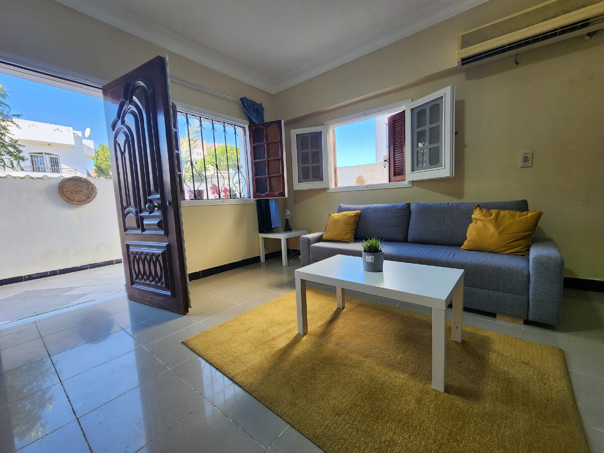 Acogedor apartamento de 1 dormitorio en el corazón de Hadaba, Sharm El Sheikh. Planta baja con 2 balcones, WiFi de alta velocidad, aire acondicionado, TV, sofá cama, lavadora, cocina completa. Villa segura con aparcamiento. A pie de tiendas, restaurantes, gimnasio y transporte. Cerca de playas de arena y coral. Acceso a la azotea con hermosas puestas de sol. ¡No fumar en interiores! Ideal para parejas o viajeros solitarios que buscan sol y relajación.