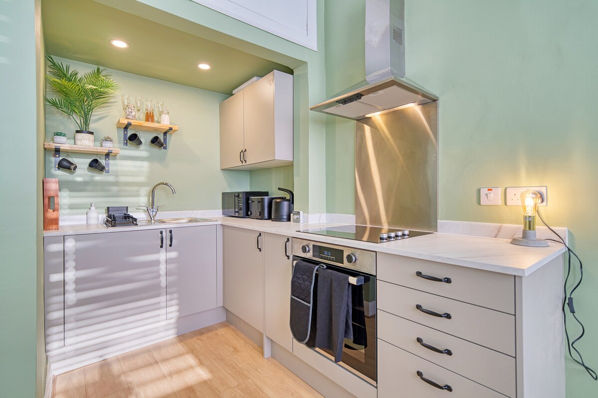 Este moderno y luminoso apartamento estudio en el primer piso dentro de un edificio de apartamentos tradicional de Glasgow se encuentra en un tranquilo callejón sin salida cerca del centro del bullicioso suburbio de Glasgow de Shawlands. La zona tiene muchos restaurantes, cafés y bares y se encuentra en el lado sur de Glasgow con enlaces directos al centro de la ciudad en autobús o tren. El departamento tiene un amplio salón y una zona para dormir con una cocina y un baño separados. El acceso al apartamento se realiza mediante un sistema de bloqueo de llaves.