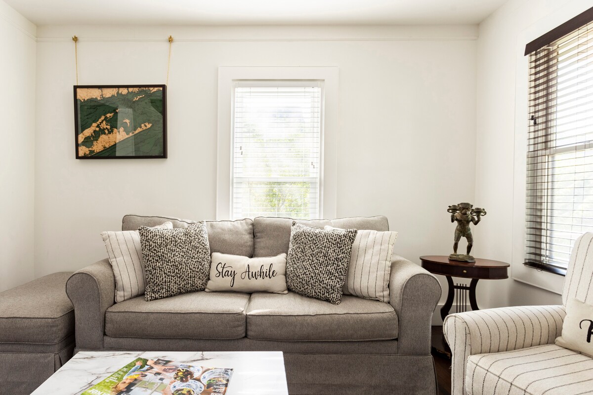 ¡Descubre el North Fork desde nuestra casa adosada de 100 años de antigüedad, renovada con estilo! Perfectamente ubicado, puedes caminar hasta la ciudad, las playas y una cervecería local. Esta casa luminosa y espaciosa cuenta con una nueva cocina, aire acondicionado central y un patio privado con parrilla. Con capacidad para un máximo de 8 huéspedes, es la base ideal para familias o grupos que exploran la región vinícola de Long Island. ¡Estaciona tu auto y disfruta de una escapada a pie!