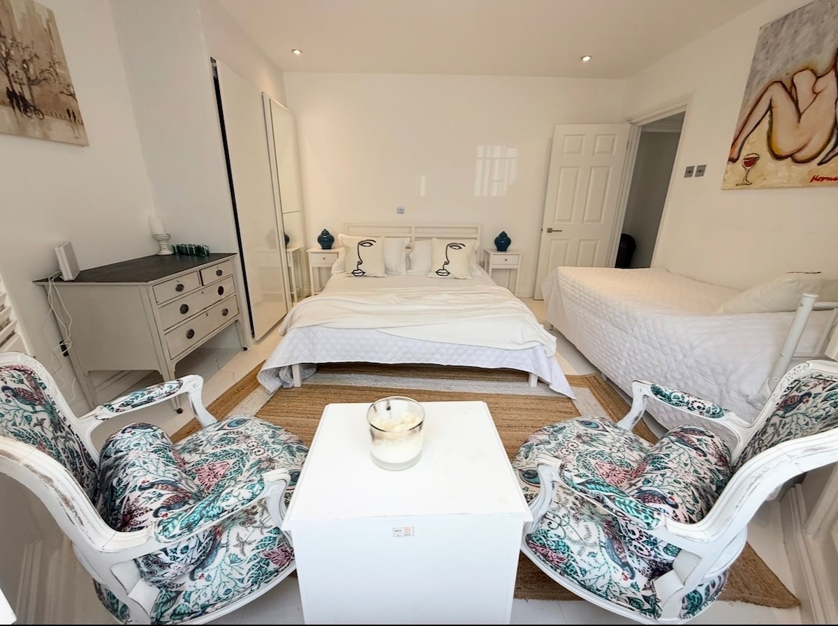 Moderno apartamento situado en la planta baja de un atractivo edificio victoriano en una calle tranquila a pocos minutos de Westfield o Soho House White City. El alojamiento consta de un buen dormitorio con una cama tamaño king, un baño moderno elegante y una gloriosa cocina de planta abierta de más de 5,5 metros y sala de recepción desde la que se accede a un encantador patio privado a través de puertas francesas. El sofá se convierte en una cama tamaño queen real con colchón cómodo para que el apartamento pueda alojar a 4 adultos. El apartamento tiene 2 televisores y una bicicleta estática Peloton.