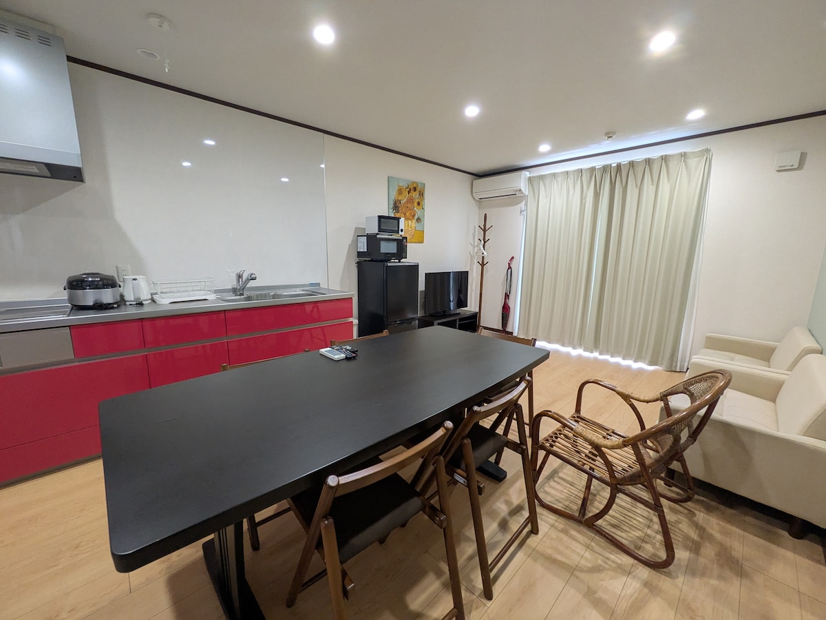 All rooms are non-smoking, including toilets and baths. We take reservations from 2 persons. There is no kitchen in this guest room. 2名様以上でご予約お願いします (1名様でご予約の場合、宿泊料は2名様分になります) 最寄のバス停(旭ヶ丘停留所)から徒歩30秒 部屋は貸切(他のゲストとの共有部分無し) 建物の2階部分のアパートの1室 無料の駐車場有 白良浜まで徒歩5分、便利な場所 徒歩5分圏内に、コンビニ、24時間スーパー、飲食店、コインランドリー 業務スーパー、郵便局、銀行等有り お部屋から海は見えません お部屋、浴室(シャワーのみ)、トイレ及び 共用部分(玄関入口)は全て禁煙 浴室内はシャワーのみ(バスタブ使用不可) バスタブ内お湯を溜める事不可 キッチン洗面所無し 洗濯機トイレシャワー完備 テレビ無し、窓からの景色は良くありません。 ★これより少し広いキッチン付きのお部屋タイプ、白浜ゲストハウス富士荘Aも掲載中です