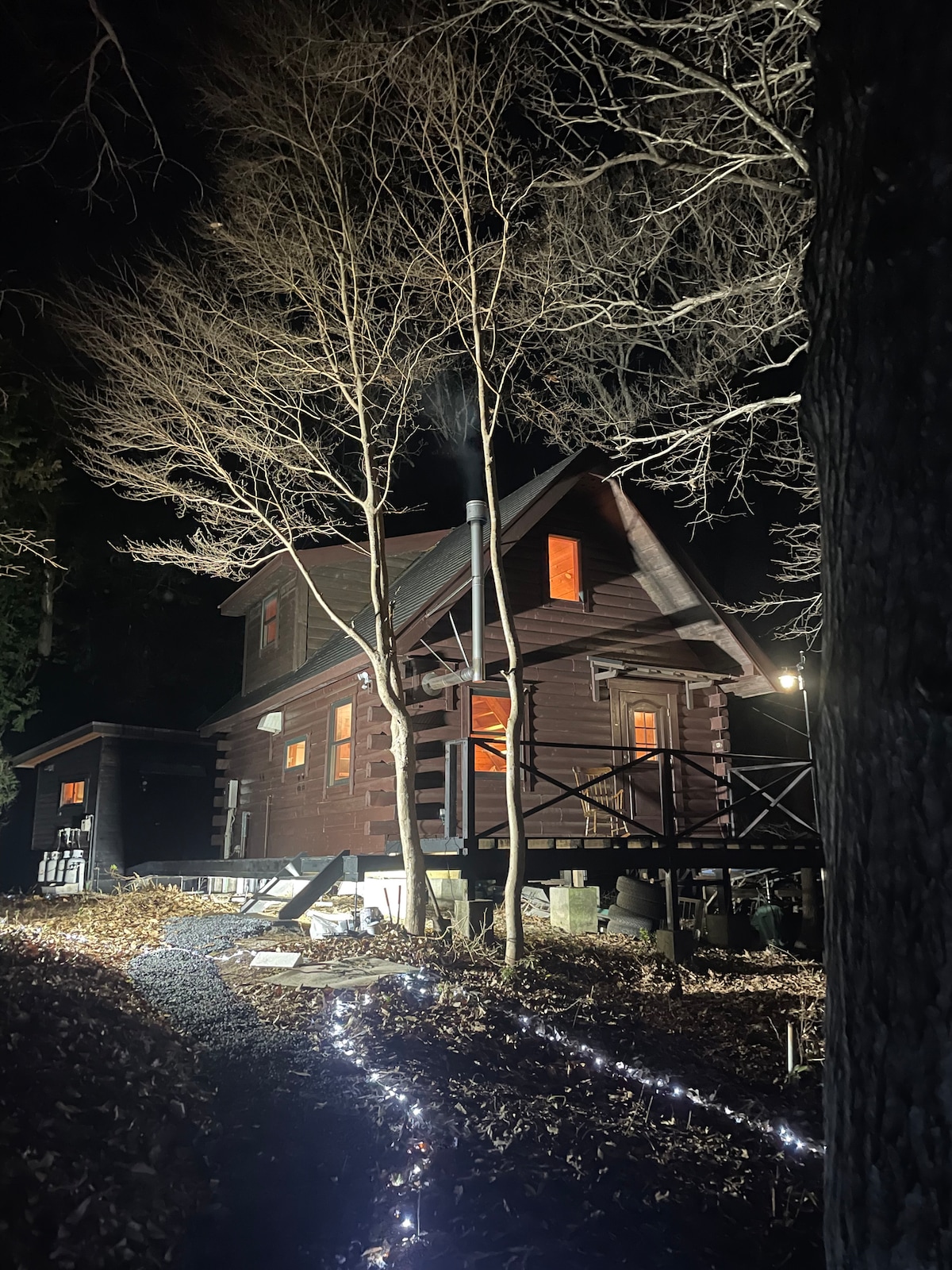 ログハウス貸切!薪ストーブ!お庭でBBQ可能!山中湖まで徒歩15分!高速バス停まで徒歩15分。