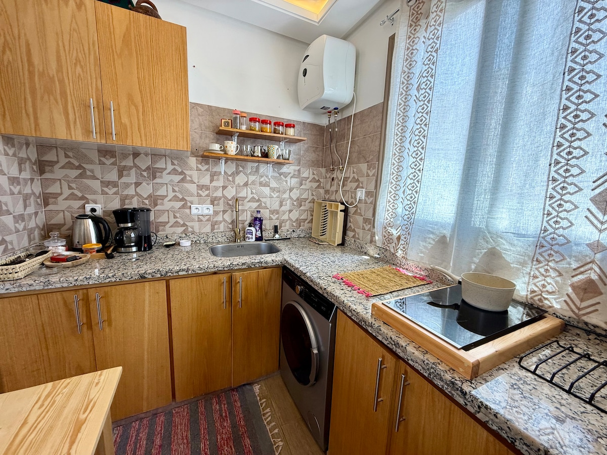 Apartamento de lujo en edificio a estrenar en la 1ª planta totalmente amueblado y decorado en un moderno estilo marroquí. En la cuarta planta hay una terraza común panorámica. Sábanas y toallas de alta calidad. Cocina totalmente equipada con fogones de gas y horno. Lavadora. Estamos a 50 metros del mar, a 500 metros de la medina y a 10 minutos a pie de la estación de kyte. Limpieza diaria, disponible bajo petición. Tenemos internet rápido ilimitado. TV de 32 pulgadas en la sala de estar.