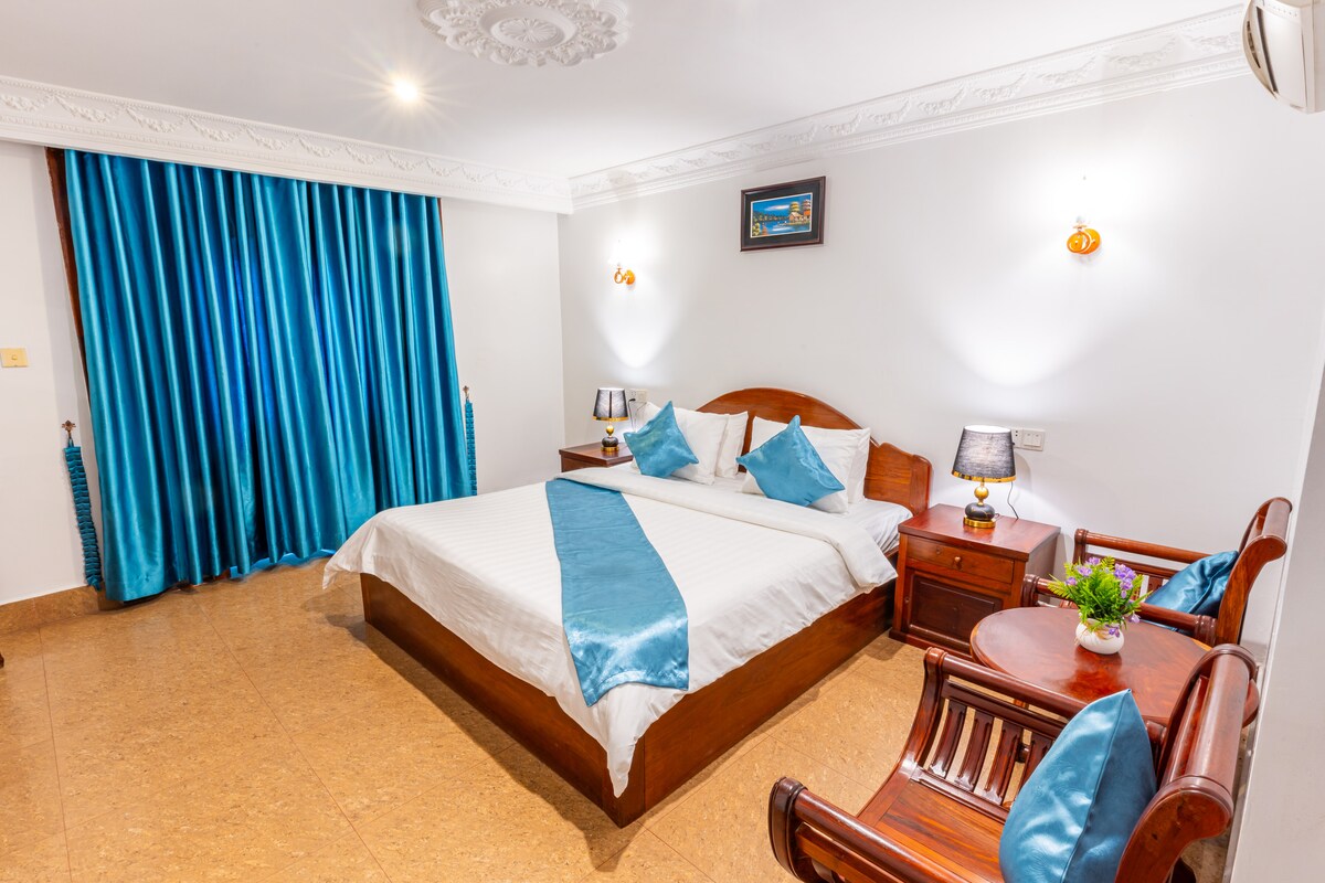 Escápate a un refugio tranquilo en Siem Reap, a pocos minutos de Pub Street y Angkor Wat. Disfruta de amplias y confortables habitaciones con aire acondicionado y baño privado, conexión Wi-Fi gratuita y una relajante piscina al aire libre + jacuzzi Perfecto para parejas o viajeros solitarios que buscan comodidad y conveniencia. Nuestro amable personal puede organizar excursiones, transporte y recomendaciones locales para que tu estancia sea inolvidable. A 1,4 km de Pub Street - 5 minutos en auto. A 1 km del Palacio Real, a 4 minutos en auto. A 900 m del templo de Watbo, a 3 minutos en auto.