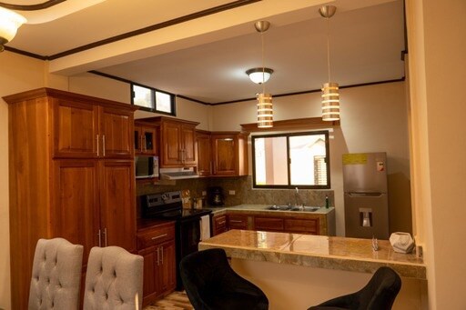 2 habitaciones con camas king (closet y baño) Excelente ubicación (5 minutos de carretera CA-5 y 3 minutos de parque central) Smart TV en habitaciones y sala principal A/C en habitaciones y sala principal Cocina completamente equipada Patio Privado Lavanderia Interna (Lavadora y Secadora) Área de trabajo con escritorio Generador Eléctrico Pozo de Agua Agua Caliente Camaras de Seguridad Garaje Techado para 1 vehiculo (estacionamiento adicional al frente) Totalmente privado