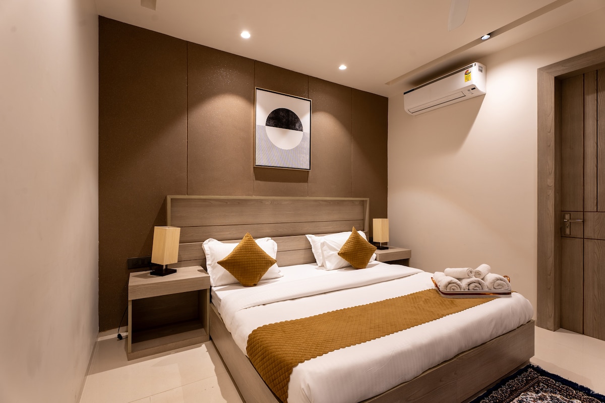 Alójate con estilo en nuestra habitación de lujo en el Sector 57, Gurgaon. A pocos minutos del Hospital Artemis, Golf Course Road y Sector 54 Chowk Metro, ofrece una conectividad perfecta en toda la ciudad. Ideal para estadías médicas, de negocios y de placer, la habitación combina la comodidad moderna con la elegancia. Tenemos licencia para recibir a extranjeros. El check-in anticipado estará sujeto a disponibilidad y se cobrarán 500 rupias, así como el check-out después de la hora establecida, también será el mismo con 500 rupias adicionales por cada 3 horas a partir de entonces.