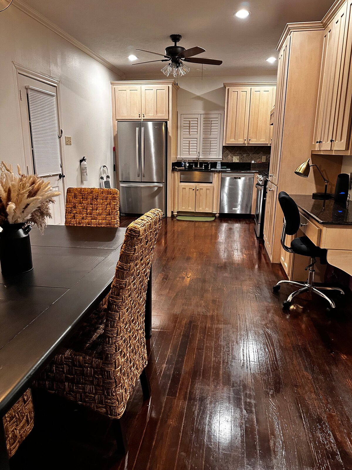 Relax with the family at this peaceful, fully renovated vintage farmhouse in downtown Silsbee, Texas. Nestled among oak trees with a creek in the backyard and a cozy porch swing, the home is as inviting outside as it is inside. Named The Jim and Charity after my great-great-grandparents who lived here, this space carries warmth, history, and comfort. Come enjoy the beauty, quiet, and heritage found in this special place, and make your own memories in this hidden gem! WiFi/cable included!