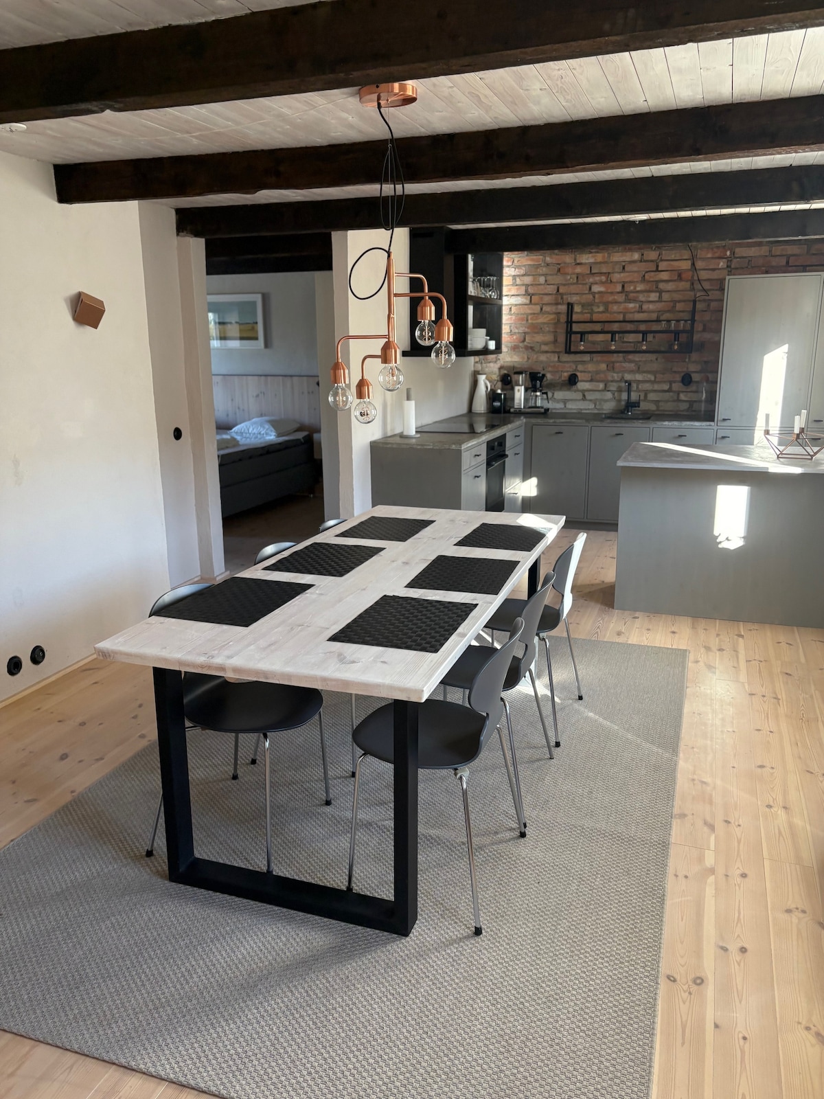 Esto es un poco como vivir en un barco, ¡un comentario común que hemos recibido! El estudio es relativamente nuevo, con comedor para seis, cocina completa, baño con lavadora y dos dormitorios con un claro toque marino al estilo de Nueva Inglaterra. El diseño es abierto, pero el dormitorio con la cama doble tiene cierta privacidad. Detrás de una puerta de teca maciza de un barco de Simrishamn hay un dormitorio con cuatro camas individuales con cortinas para correr. Las camas tienen lámparas de lectura y enchufes para cargar dispositivos. Caja de carga para coche eléctrico. Sauna y piscina.