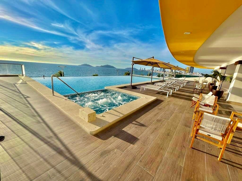Espacio perfecto para 3 adultos y 2 niños o 2 adultos y 2 niños menores de 12 años. Disfruta con toda la familia o tus amigos en este fantástico alojamiento que tiene espacio para divertirse, con alberca infinita, jacuzzi, gimnasio, cabina de vapor, estacionamiento privado. Acceso directo al malecón y con solo cruzar la calle ya estás en el mar. Los mejores atardeceres del pacifico podrán ser capturados desde el amplio balcón que cuenta nuestro alojamiento.