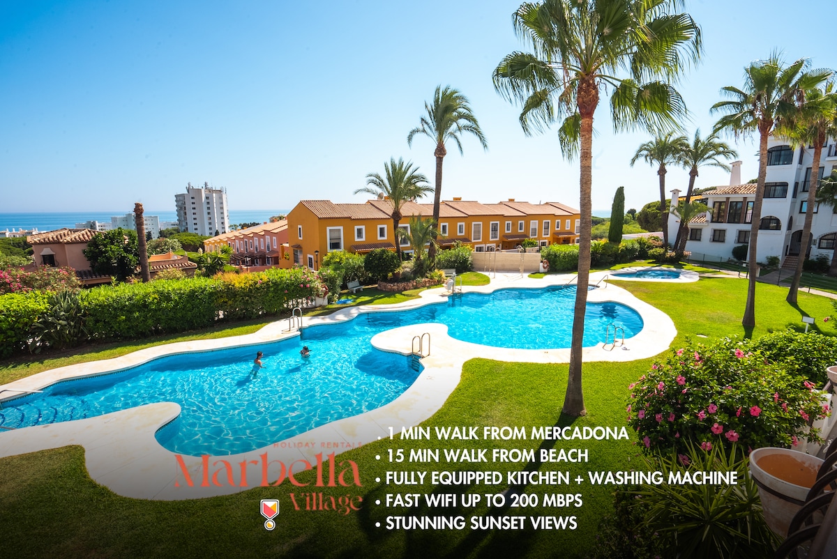 Disfruta de las vistas al mar en el apartamento Calahonda de Marbella Village: tu escapada costera más tranquila. • Terraza privada con piscina, vistas al mar y al atardecer • Ideal para familias, amigos y teletrabajadores • Piscina compartida, aparcamiento privado y ubicación tranquila • Aire acondicionado, cocina completa, Smart TV y wifi de alta velocidad • A un paso del Mercadona, la playa y restaurantes locales ¡Guarda esta propiedad haciendo clic en el ♥️ de la esquina superior!