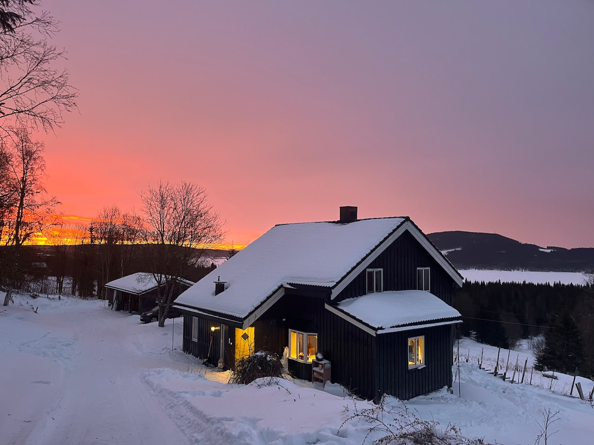 The farm is located about 10 km from the center of Lillehammer(not walking distance)with a great view of southern part of Lillehammer. The apartment is on the top floor of the main house and contains 1 bedroom with double bed, 1 bedroom with bunk bed, 1 bathroom, well-equipped kitchen, dining room with sleeping alcove and a large living room where some space can be converted into a sleeping alcove. There are opportunities to make use of the garden and outdoor area. We have 6 chickens and 2 cats.