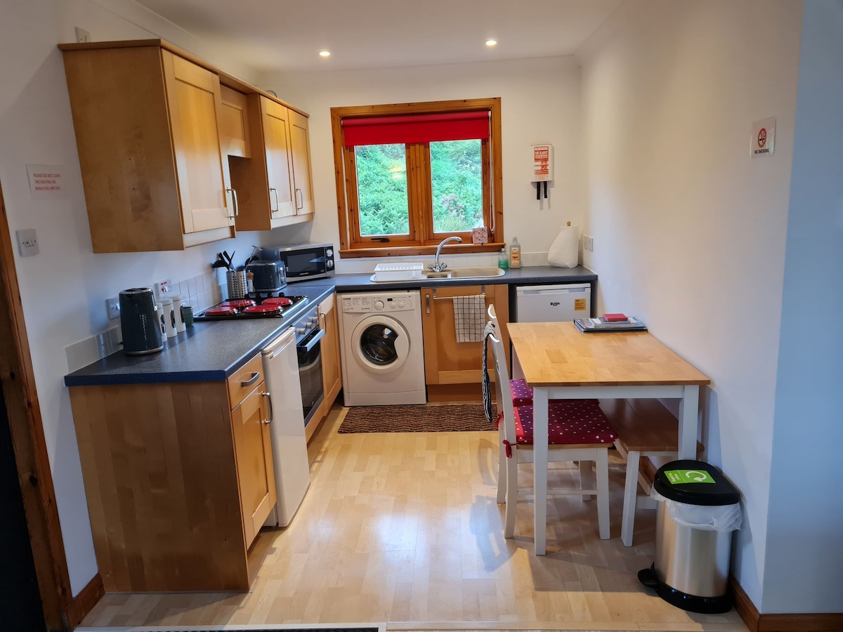 El albergue es de planta abierta con mucho espacio y tiene su propia entrada privada, puerta principal, sala de estar, cocina totalmente equipada y baño con ducha. Se suministra té y café para tu comodidad. Aprovecha la zona de la terraza, disfruta de vistas tranquilas de 360 grados de Dun Leacainn y las colinas circundantes mientras observas la vida silvestre y capturas grandes recuerdos. En una noche despejada, las estrellas llenan el cielo. Los paseos directamente alrededor del albergue están llenos de historia y vistas impresionantes, incluida una cascada.