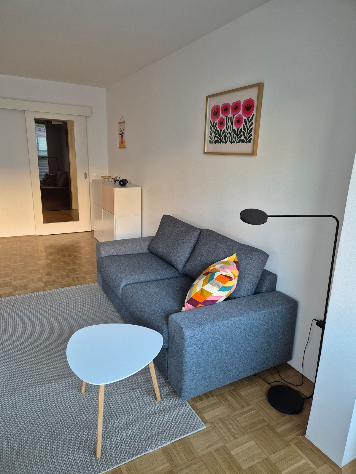 Recientemente renovado en 2025. Calefacción por suelo radiante. Ideal para 4, cómodo para 6. Es un apartamento de planta baja (55 m2) con su propia entrada. Tiene estacionamiento privado gratuito, wifi de alta velocidad y TV, lavadora/secadora, cocina totalmente equipada, dos dormitorios con camas tamaño king (180x200), sala de estar con sofá/cama doble, baño con ducha y terraza con mesa y sillas. Se encuentra en un vecindario tranquilo: Hofer/Aldi está a 600 metros, autobús directamente vinculado al centro de la ciudad a 300 m . A 5 minutos o 3 km del centro de la ciudad en coche.