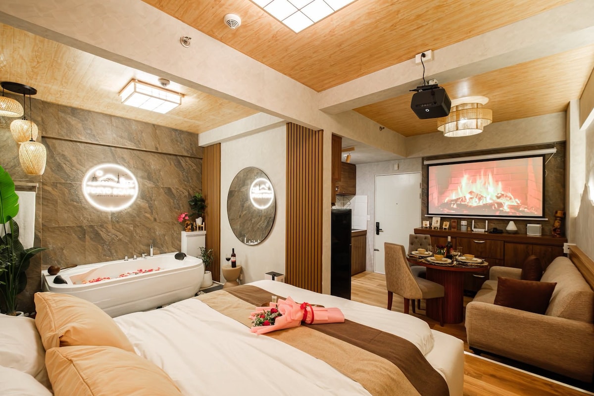 Tampisaw Suite – Romantic City Staycation w/ Bathtub + Pool Access "I just needed peace… and then I found this place." Just 2 mins from GMA Kamuning MRT, Tampisaw Suite is your cozy escape in the city—boho, minimalist, and complete with a bathtub by the window. Whether you're planning a romantic night, a solo reset, or a surprise celebration, Tampisaw Suite was made to help you recharge—without ever leaving Quezon City.