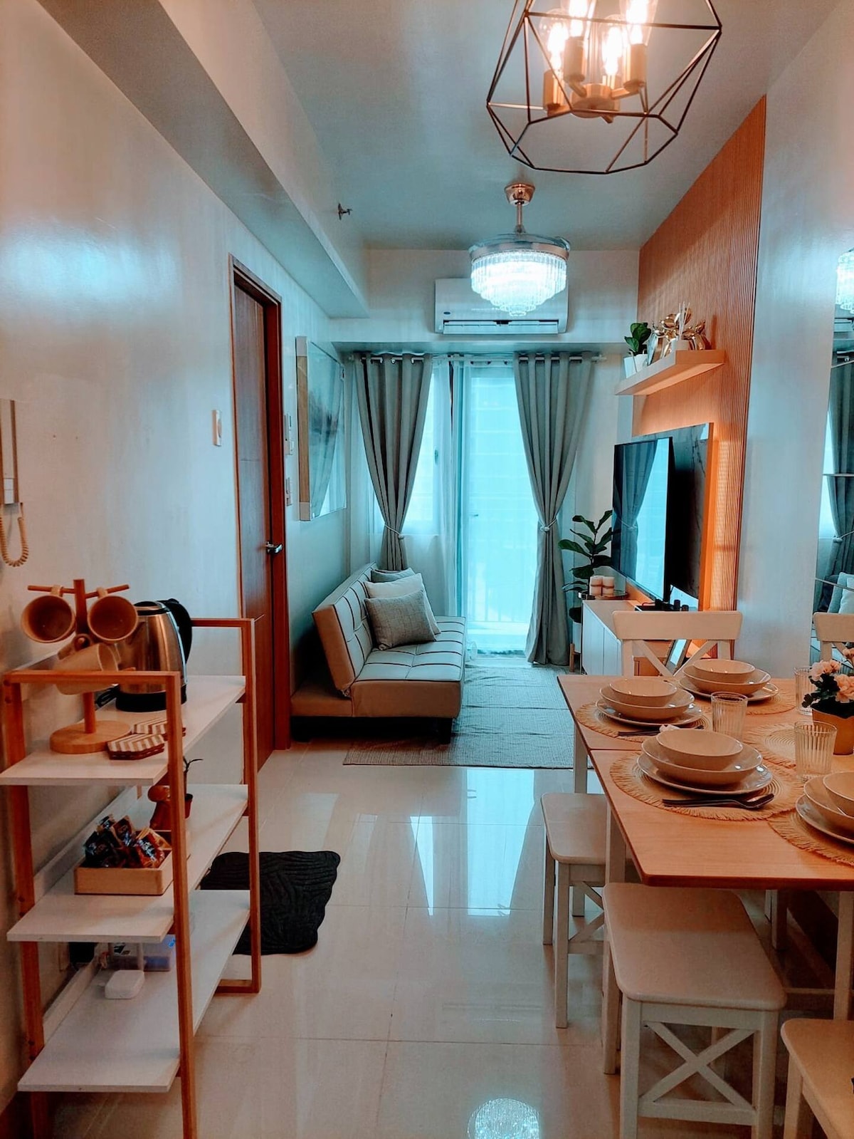 Espacio rústico de 1 dormitorio | A pie de MOA | Pasay | Karaoke