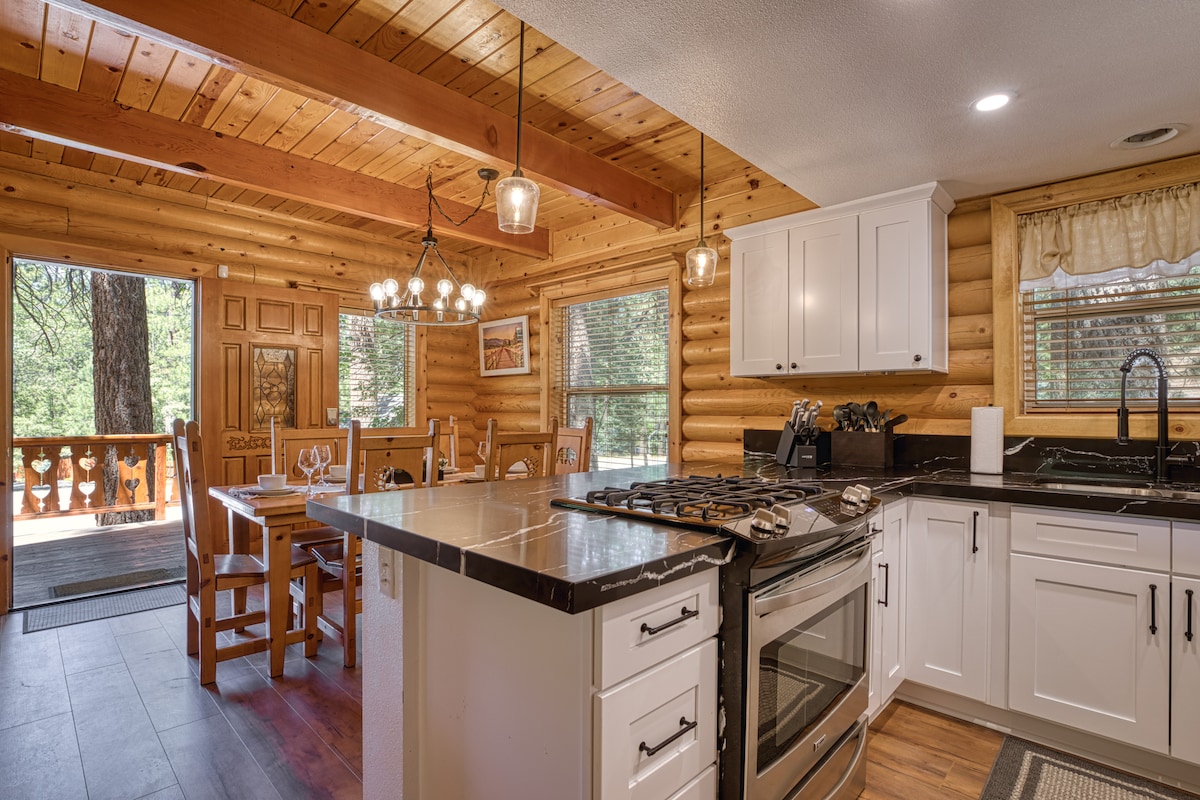 Escápate a la naturaleza en esta casa de campo reformada. La casa combina acabados rústicos de madera con servicios elegantes, decoración vintage y cuenta con techos de catedral, un loft tipo altillo, una chimenea de piedra a la vista y una terraza para barbacoa con vistas a la bañera de hidromasaje privada. La propiedad está a pocos pasos de Snow Summit para practicar esquí, eventos, restaurantes, cafeterías, paseos en bicicleta, senderismo y mucho más. Se encuentra a poca distancia en coche del lago para pasear en bote, pescar, hacer kayak y surf de remo.
