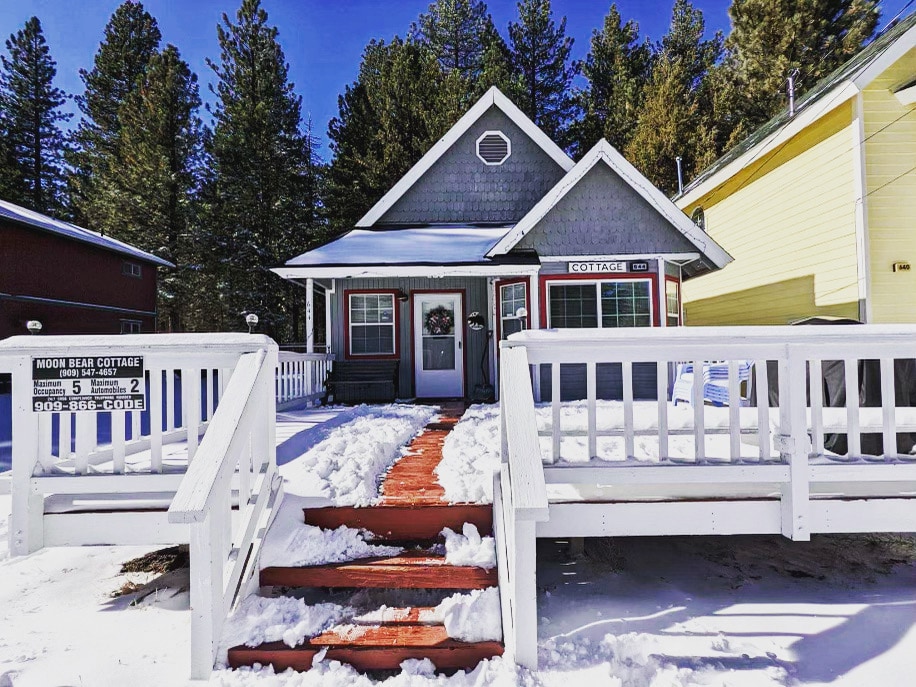 Licencia n.º VRR-2025-0871 Código wifi> rocketbasket147 < ¡Una casa rural romántica de cuento! Dormitorio queen, un acogedor sofá cama (tamaño completo), calefacción central, aire acondicionado, TV, DVD, micro, cafetera y licuadora. Chimenea de gas. La barbacoa de gas y la plancha en el porche son ideales para cocinar huevos y tortitas crujientes en las mañanas de montaña. ¡Se admiten mascotas/patio vallado! Muy cerca (a poca distancia a pie) del lago y del pueblo que admite perros. ¡La acogedora y acogedora casa de campo vintage «Ahhhdorable» será perfecta para una visita a Big Bear!