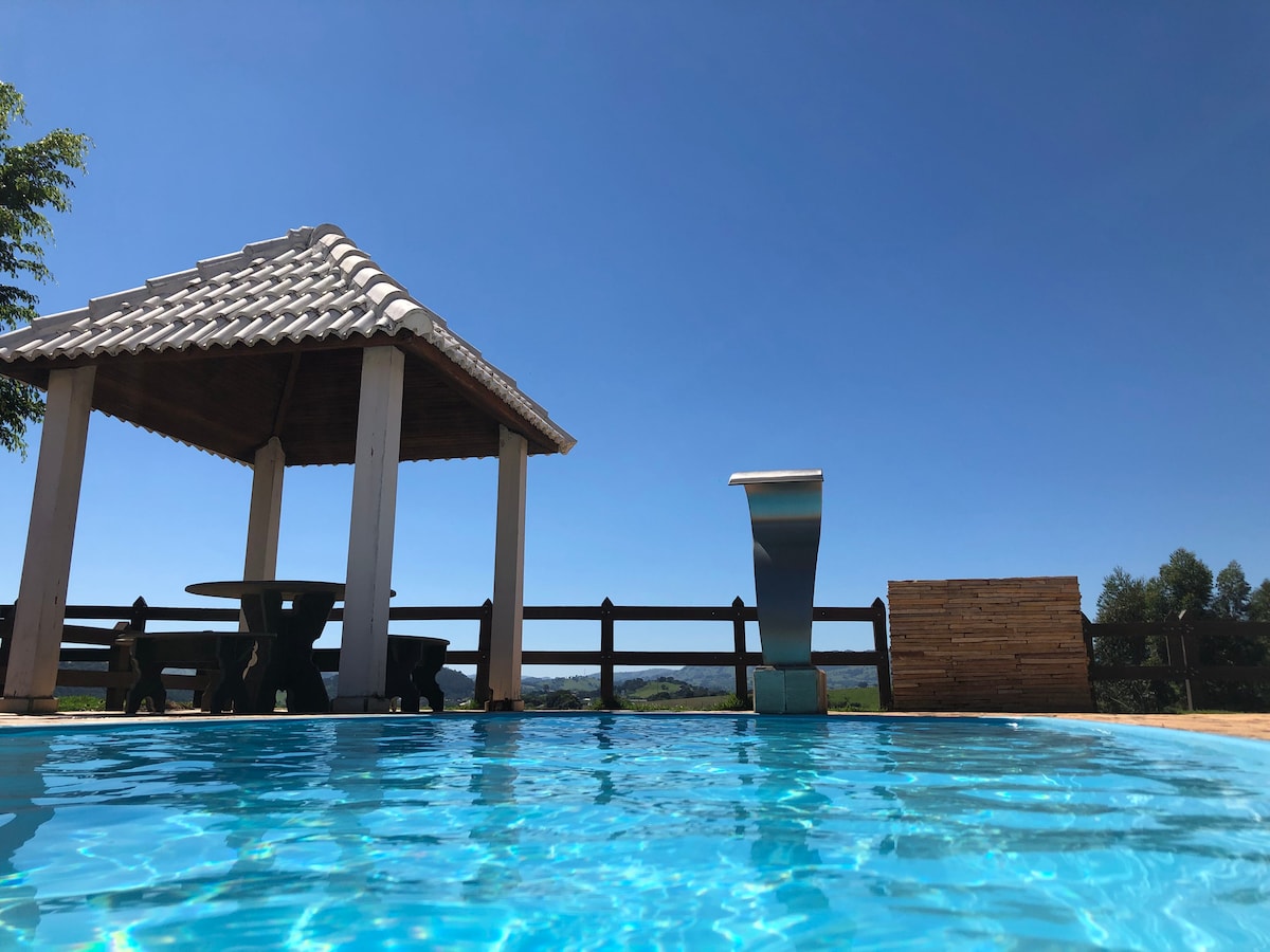 Inaugurado en diciembre de 2023, el Rancho Mirante da Serra combina comodidad, naturaleza y sofisticación en una ubicación privilegiada, a unos 6 km del centro de la ciudad. ¡Hidromasaje con cromoterapia, piscina con calefacción solar y chimenea de suelo son algunos de los atractivos para el invierno! La piscina climatizada depende de las condiciones climáticas y del uso de la capa térmica, lo que la hace agradable para nadar. Nuestro espacio está en la cima de una montaña, con vistas a la naturaleza.