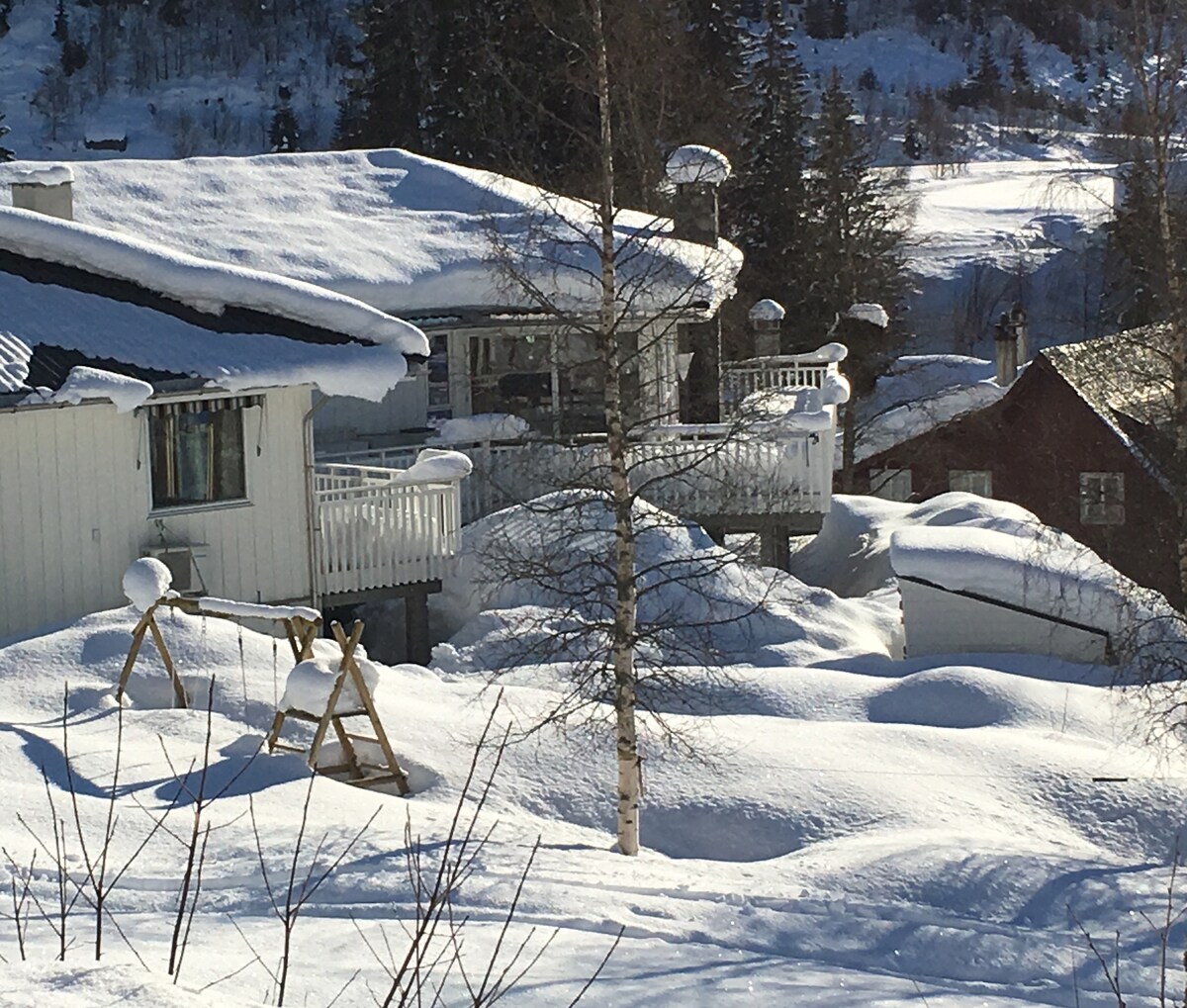 Una acogedora casa de huéspedes con tres dormitorios, dos salas de estar y capacidad para hasta 12 huéspedes. La casa ofrece una cocina totalmente equipada, comedor, chimenea y conexión Wi-Fi. Sala loft con TV. Afuera una espaciosa terraza, jacuzzi, área de parrilla, gran césped, trampolín y hermosas vistas. Perfecto para familias y grupos durante todo el año. Lavadora (100 NOK por carga). La carga de automóviles eléctricos es de NOK 200 por carga.
