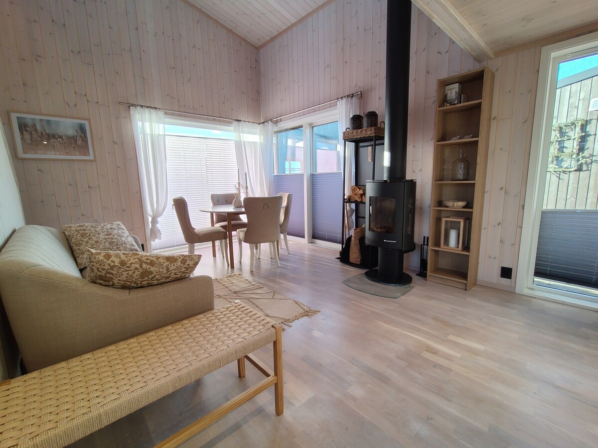 Her er du og ditt reisefølge i umiddelbar nærhet til natur og strand. Her er fasiliteter like utenfor døra, like ved campingplassen og Boretunet. Flotte turmuligheter og solnedganger på stranda. Det er cafe, surfeutleie og aktiviteter her store deler av året. På loft/hems er det sovesofa som kan gjøres om til dobbeltseng /2 sengeplasser for natten.