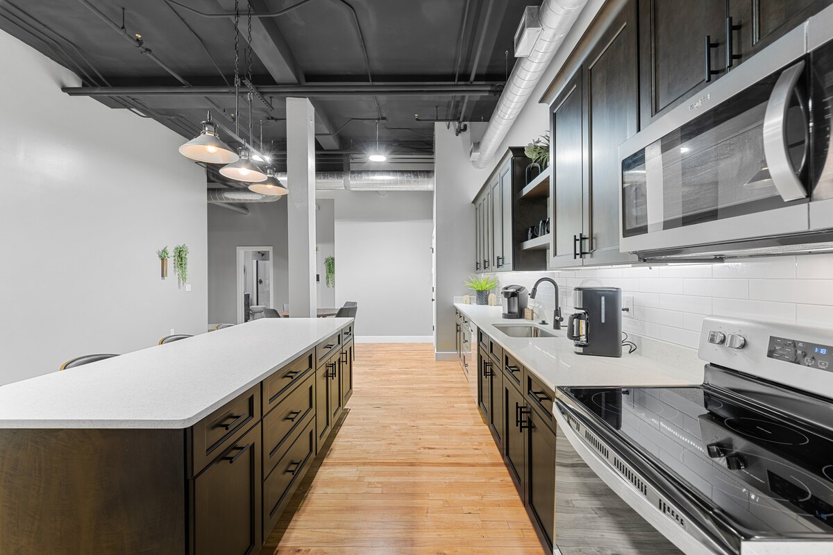 Este maravilloso apartamento recién remodelado forma parte del histórico Stiefel Theatre en el centro de Salina. Este bonito apartamento tiene grandes ventanales con vistas a Santa Fe. Estás justo en el corazón del centro de la ciudad, todos los restaurantes y tiendas están a pocos minutos. El loft tiene un dormitorio con capacidad para dos personas y también un sofá cama West Elm con capacidad para dos personas en la sala de estar. Hay una entrada privada en Santa Fe, una cocina completa con microondas, cafetera expreso y cafetera, y lavadora y secadora.