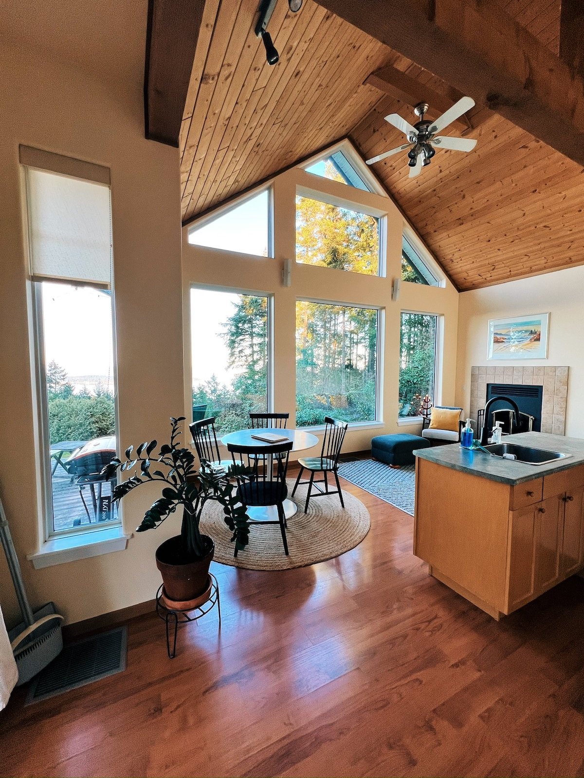 Renueva tu alma en este alojamiento inspirador y relajante. Situado en una pequeña comunidad cerrada a lo largo del estrecho de Juan de Fuca, las vistas y los sonidos del surf y la vida silvestre te dejarán asombrado desde el momento en que llegues. Canadá está a solo 12 millas a través del estrecho, por lo que los barcos que van y vienen del Pacífico a los puertos de Seattle y Vancouver pasan por aquí, lo que se suma a la escena en constante cambio. Cambios dramáticos de marea, puestas de sol de clase mundial, abundante vida silvestre, surf, pesca de cangrejos, pesca, búsqueda de objetos en la playa...