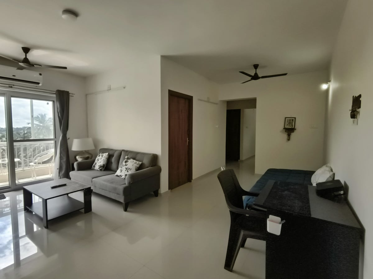La ubicación: A 100 metros de la carretera principal. A 10 kilómetros del aeropuerto. A 4 km de la estación de autobuses KSRTC. A 8 km de la estación de tren. El espacio: Cómodo apartamento bien amueblado con todas las comodidades necesarias. 1 dormitorio con aire acondicionado. 1 dormitorio sin aire acondicionado. Interacción con los huéspedes: Los anfitriones residen cerca; serviciales con requisitos de cualquier tipo. También están disponibles por teléfono.