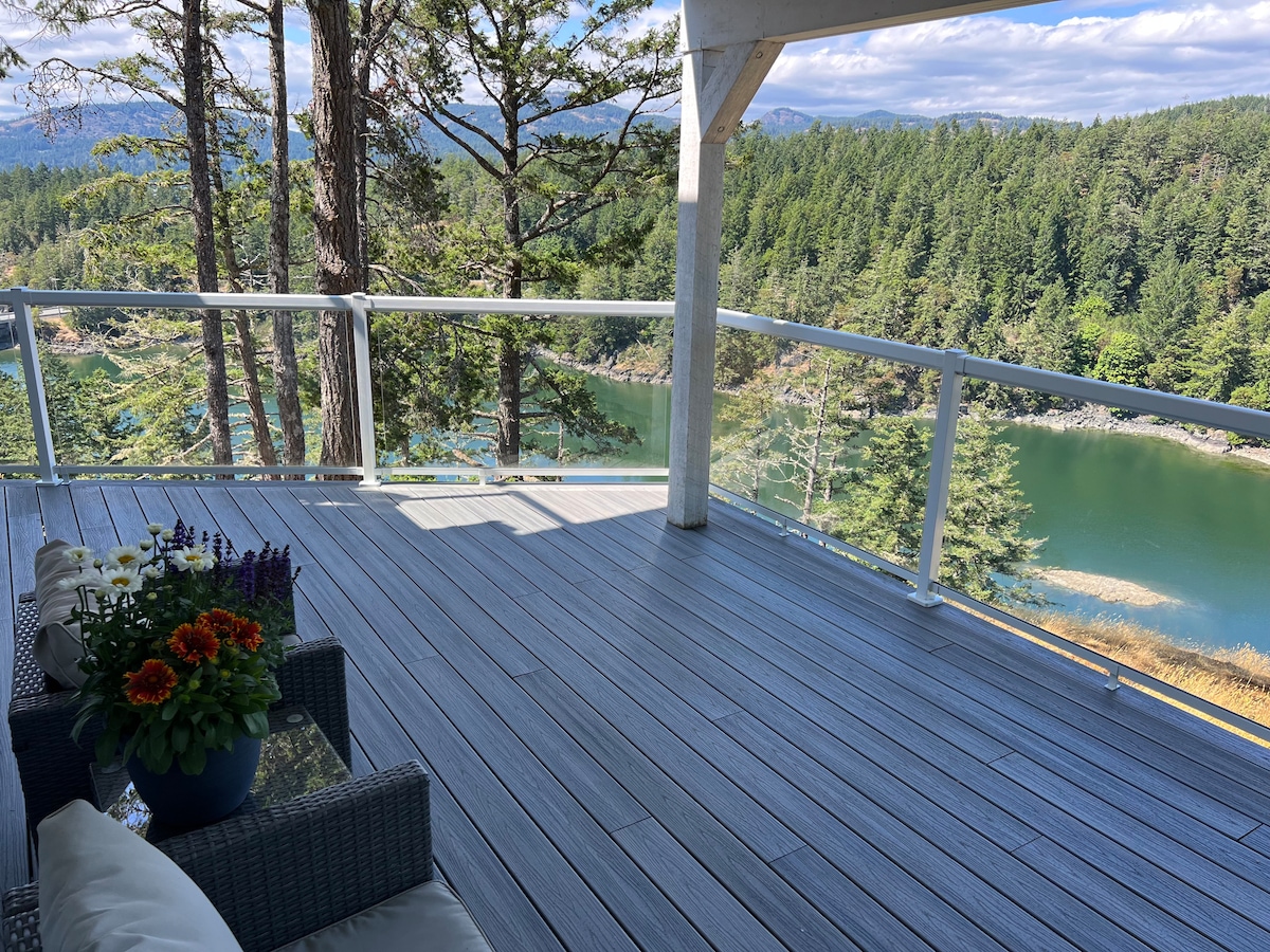 This beautiful home is located on Oxbow Ridge on Pender Island with a breathtaking view over Poets Cove. It offers a landscaped yard with chairs to relax in to admire the views. There is a smaller cottage that tenants live in on site in an adjacent building, they have a dog on site who may pop over to say hi. The main house is the owners personal home and live in it during the year. Please note that we have two private areas that will be closed off to guests in the house.