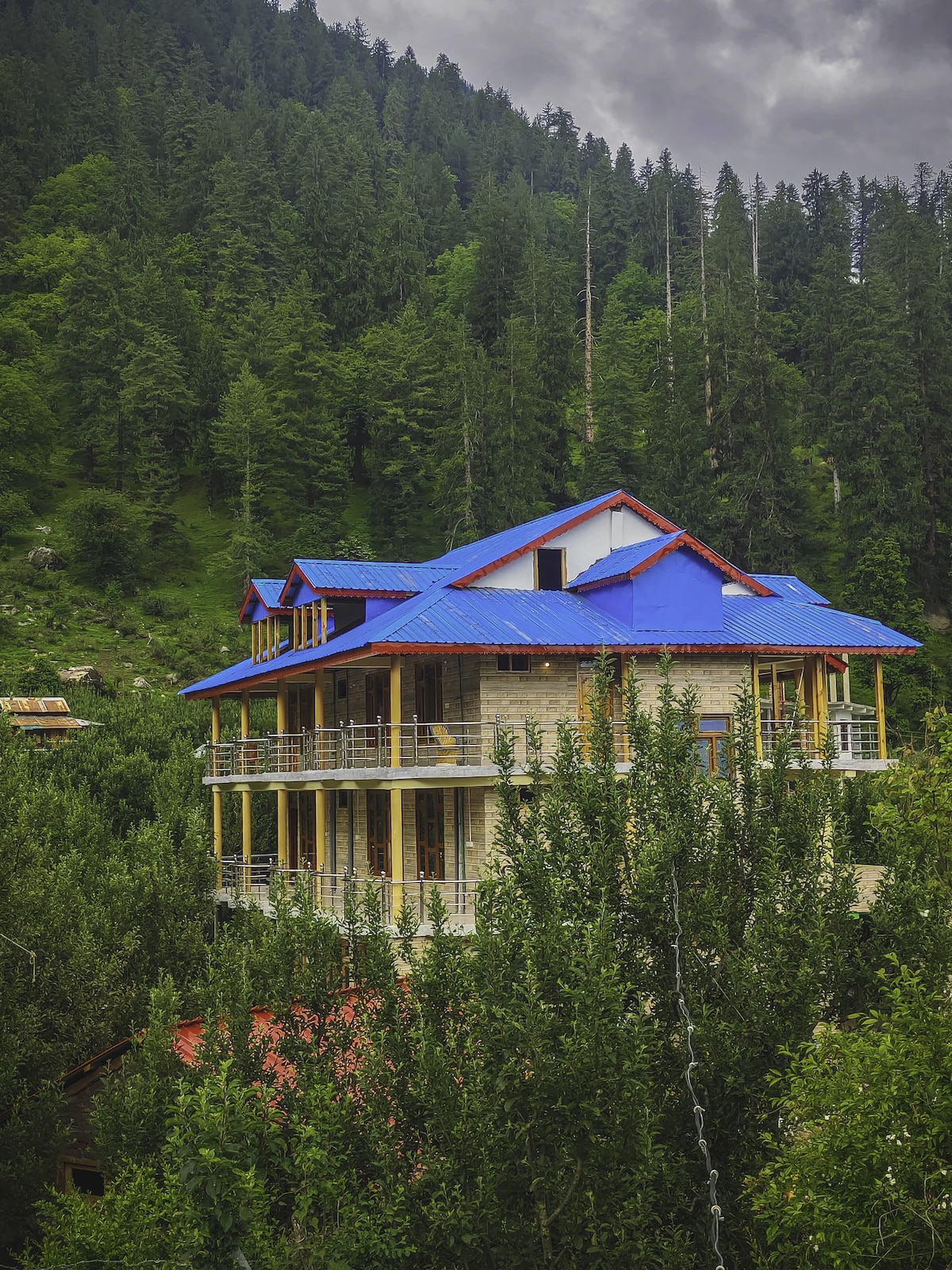 Tosh is a quiet, scenic Himalayan village tucked high in the Parvati Valley, known for its rustic charm, tranquil environment, apple orchards and dramatic mountain views. This is a small family-run homestay offering comfortable rooms with private bathrooms and beautiful mountain & river views from balconies or common areas. This rooms have balcony facing the Himalayas, so you wake up to views of snow-capped peaks. There’s a terrace and outdoor seating perfect for relaxing with tea.