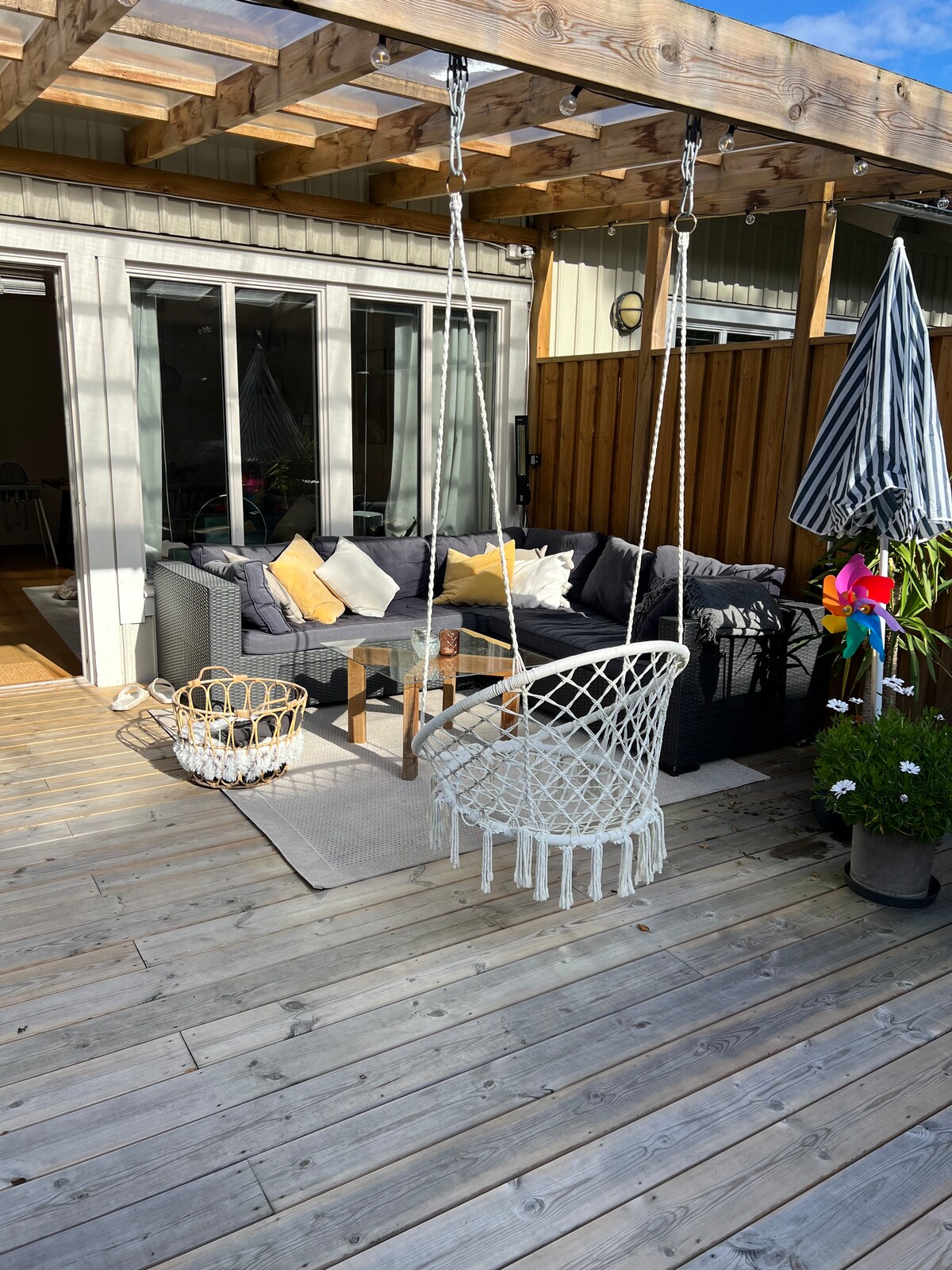 Villa en el centro de Kungshamn. Cerca de zonas de baño y restaurantes La villa tiene dos plantas con áreas sociales en la planta baja, cocina bien equipada y lavadero. El piso superior tiene una sala de estar, tres dormitorios. 8 camas (2 * 180 cm, 1*160 (sofá cama) cm, 1*120 cm + 1*90 cm) Amplia terraza con patio protegido, patio con cocina al aire libre, parrilla de carbón y horno de pizza. Estacionamiento para tres autos y posibilidad de cargar un auto eléctrico (con costo). Los huéspedes traen su propia ropa de cama y toallas. La limpieza la realiza el propio huésped