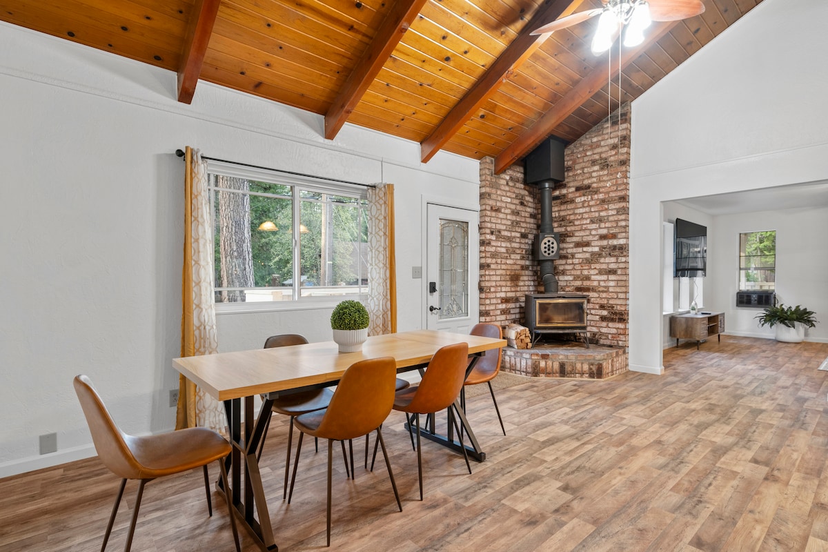 Ubicada en un tranquilo barrio boscoso, esta casa de troncos de 3 dormitorios y 2 baños ofrece un refugio perfecto entre los pinos. Cuando no estés disfrutando de las vistas al bosque y de la parrilla en la terraza envolvente, ¡encontrarás muchas actividades recreativas en la naturaleza circundante! Disfruta de la estación de esquí de Dodge Ridge, el lago Pinecrest y las rutas de senderismo cercanas, incluido el parque y el lago superior de Crystal Falls, que se encuentra a solo unos pasos. De vuelta en el alquiler vacacional, ¡te esperan comodidades y servicios modernos!